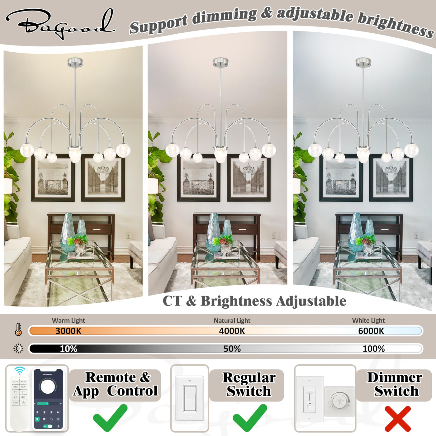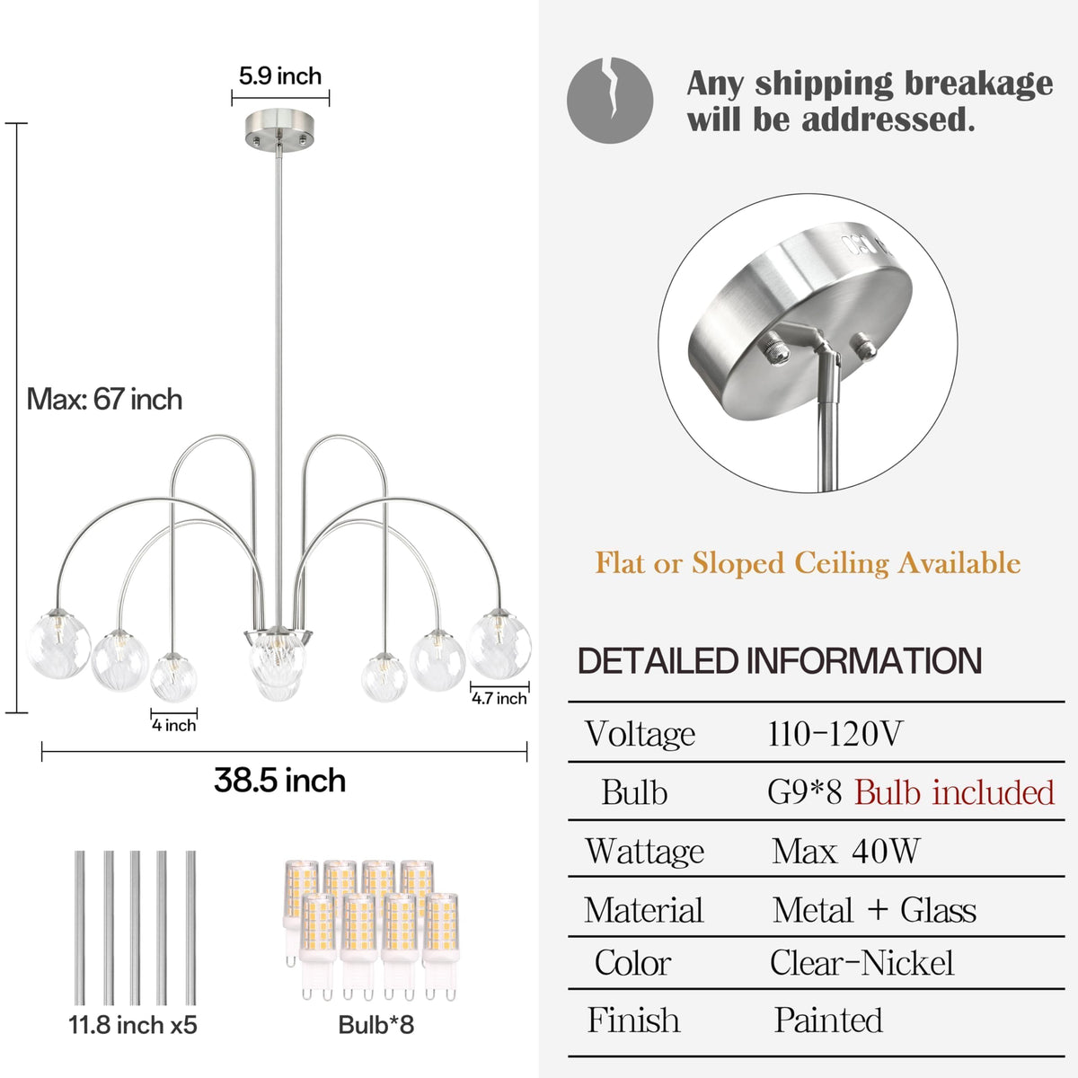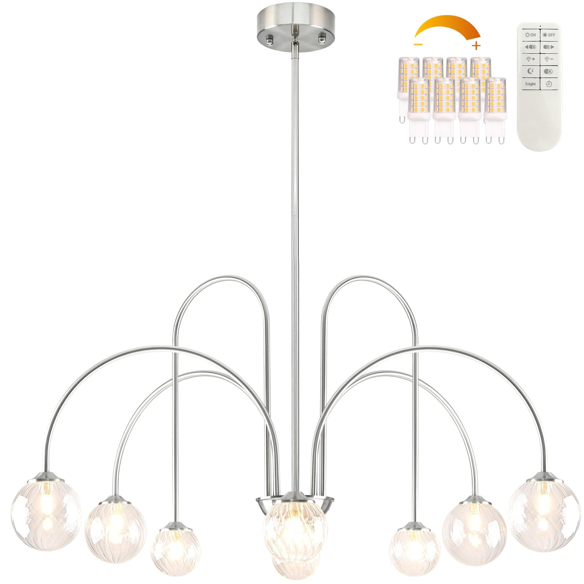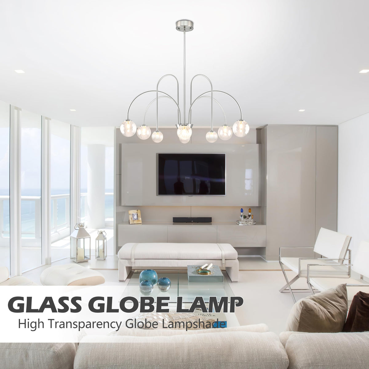 Bagood Nickel Sputnik Chandelier 8-Light Globe Pendant Light 38.5 Modern Sputnik Chandelier With Clear Glass Globe Shade Dimm