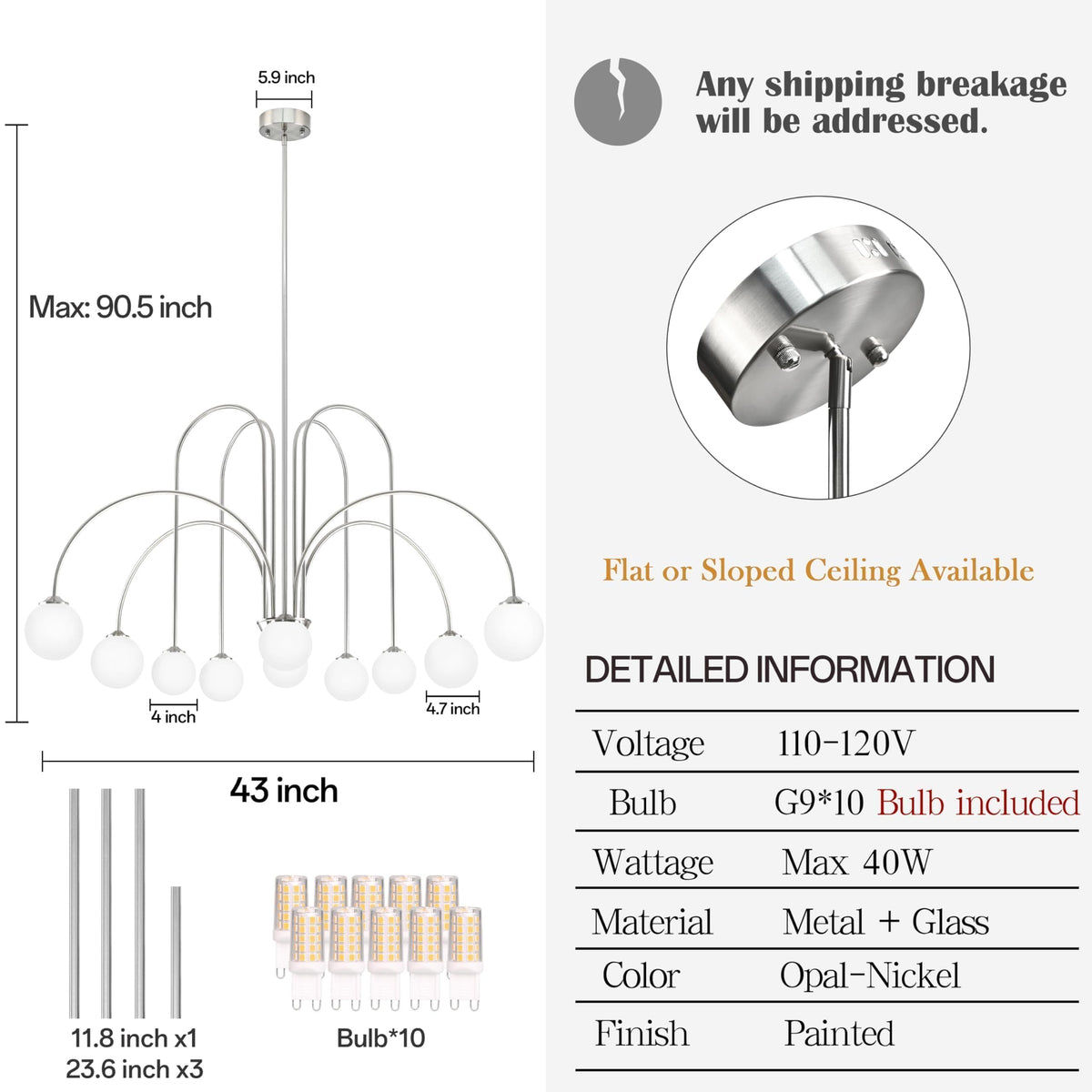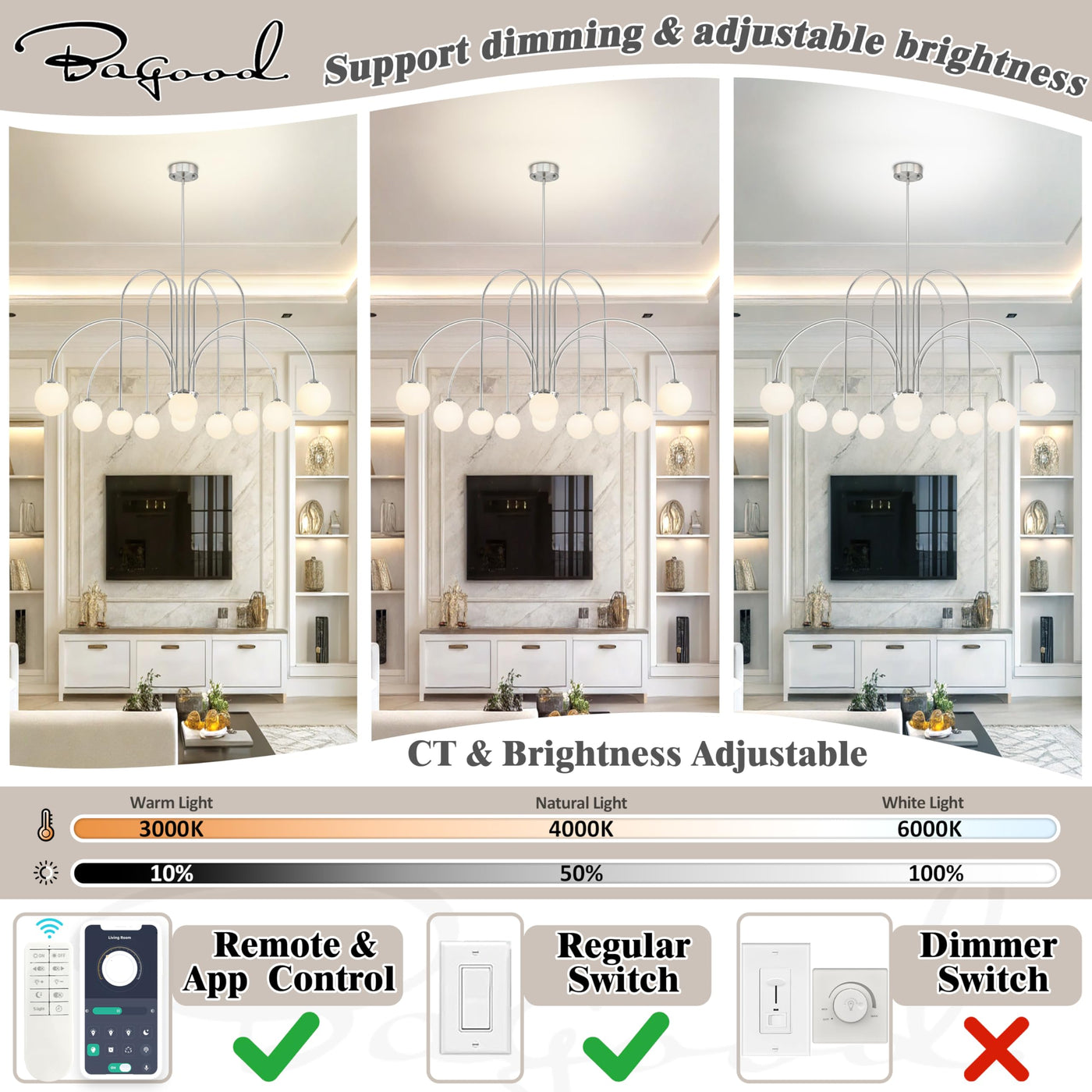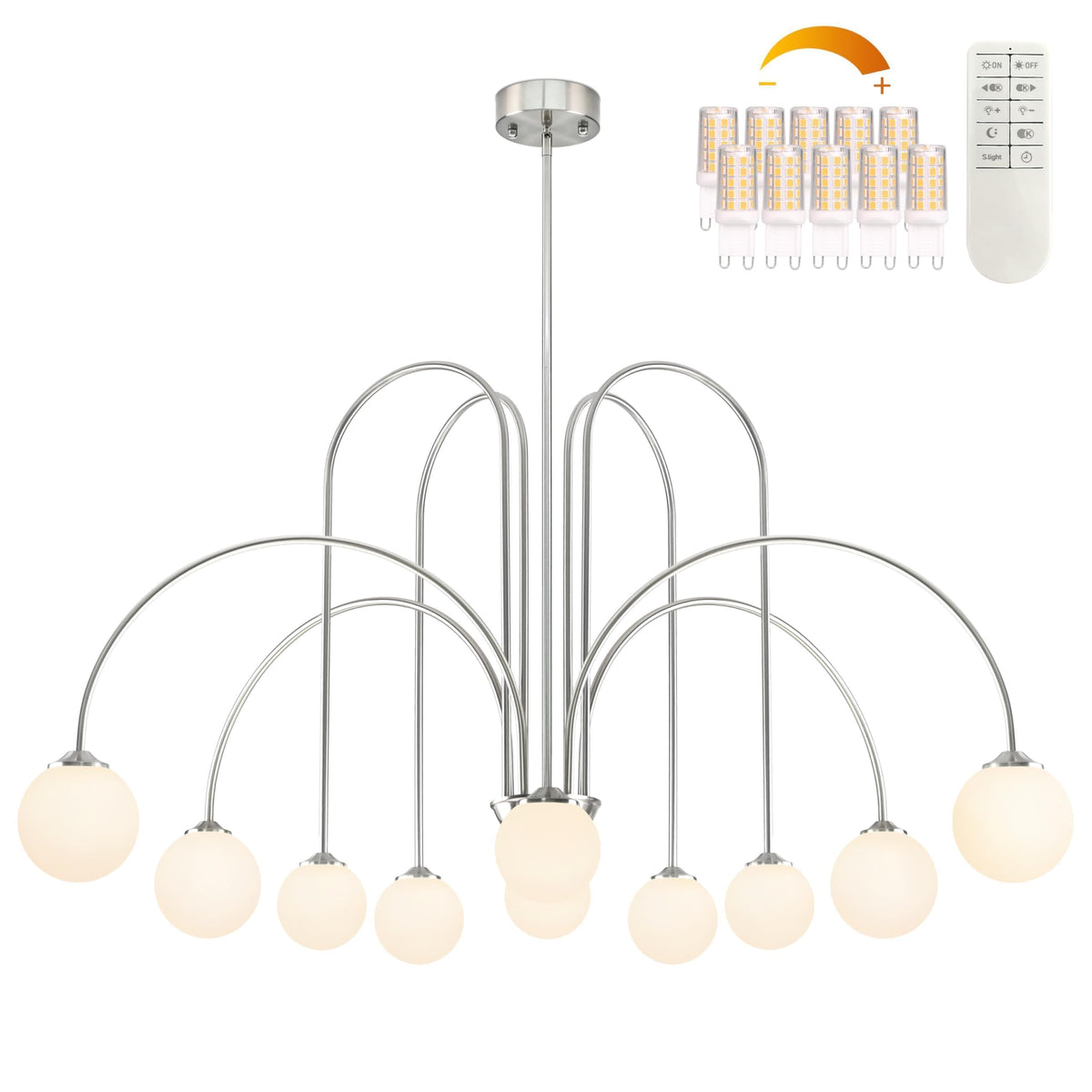 Bagood Nickel Sputnik Chandelier Dimmable Mid Century 10-Light Globe Chandeliers 43 Modern Sputnik Chandelier With White Glob