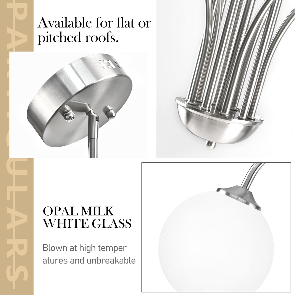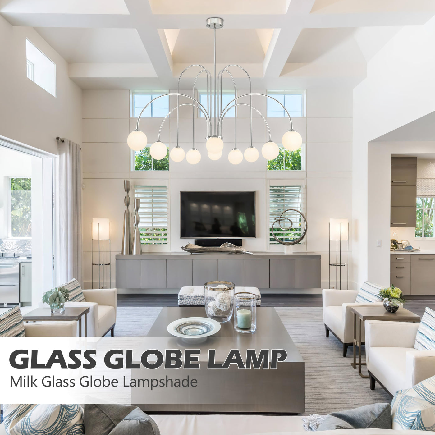 Bagood 10-Light Modern Sputnik Chandelier Mid Century Large Glass Nickel Sputnik Chandeliers Large Frosted Globe Chandelier Milk Glass Pendant Light Fixtures Semi Flush Mount Chandelier for Dining Room