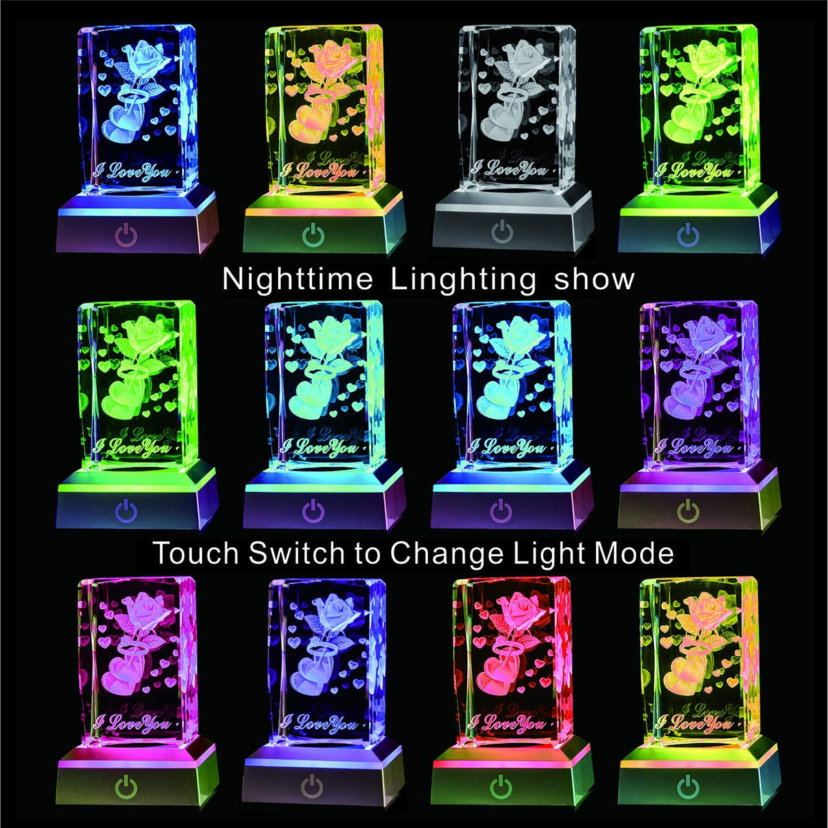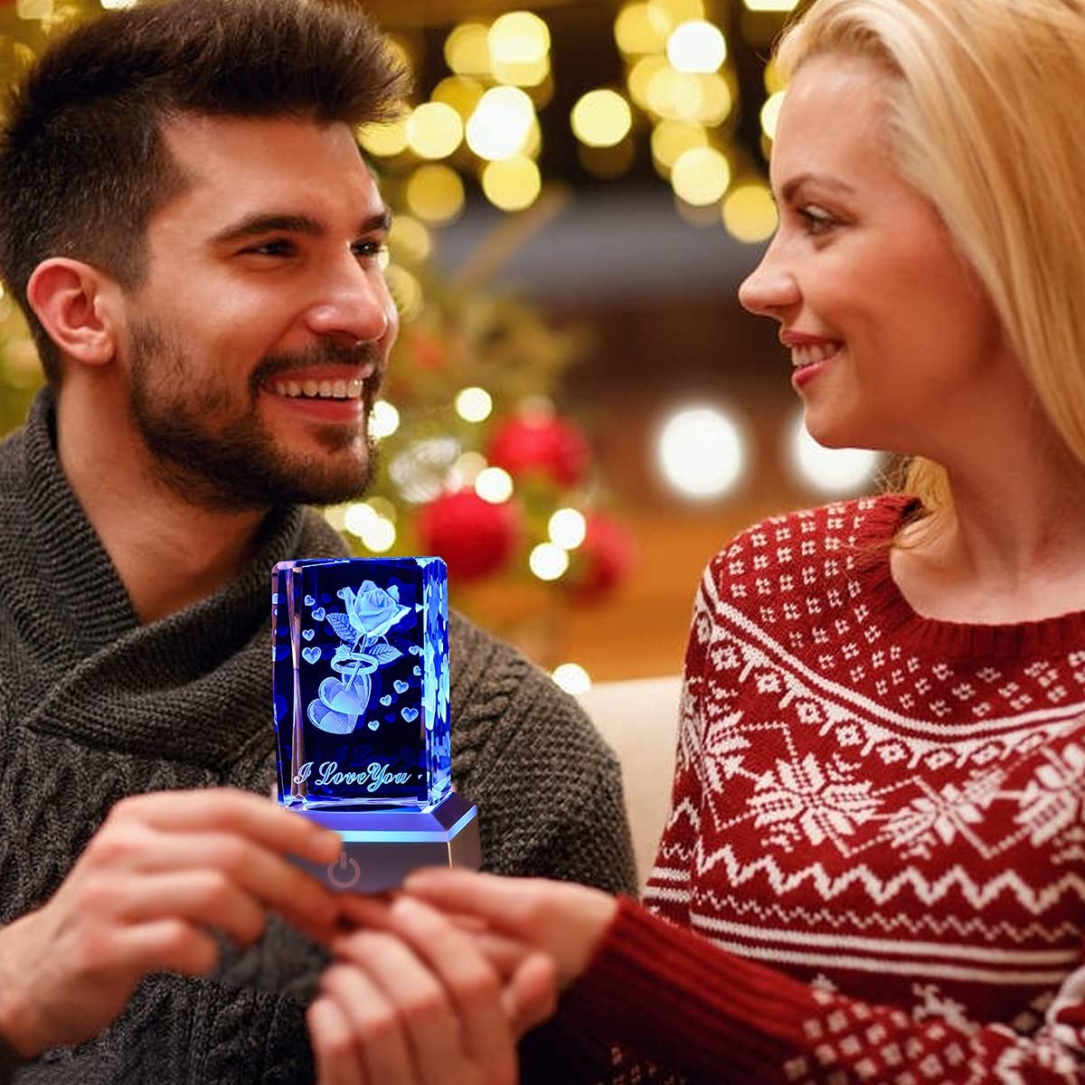 Bahujida I Love You 3D Ring Rose Crystal With Led Color Night Light, Valentine'S Day Mothers Daygifts For Wife Mom Women Her,Uni