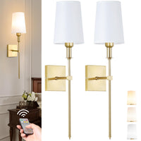 Bailoch Gold Rechargeable Battery Operated Wall Sconces Set Of 2, Cordless Dimmable Battery Powered Wall Lights With Remote, Wireless Wall Lamp Lighting Fixture For Bedroom Living Room