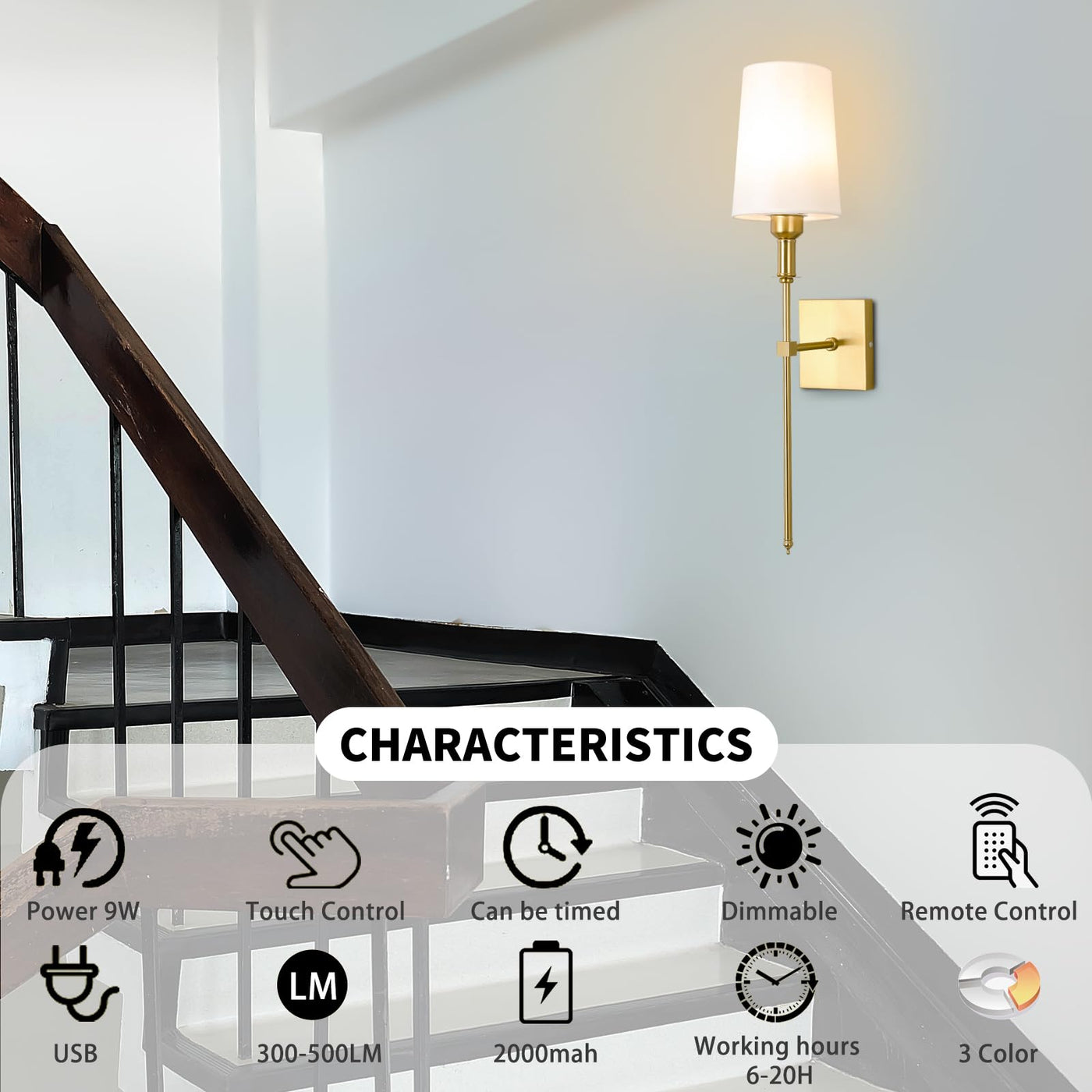 Q: How long do the batteries last on a full charge?A: The Bailoch Gold Rechargeable Wall Sconces offer up to 20 hours of continuous lighting on a full charge, making them a reliable choice for long-term use.