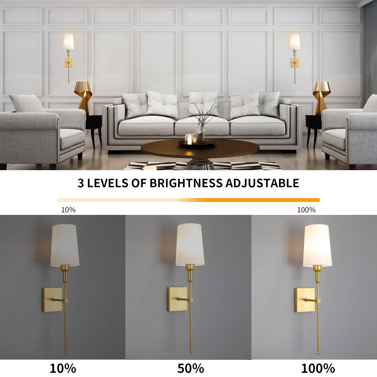 Bailoch Gold Rechargeable Battery Operated Wall Sconces Set of 2 with Remote, Wireless Dimmable Battery Powered Wall Lights, Cordless Wall Lamp Lighting Fixture For Bedroom Living Room, Bulb Included Wall Sconce X 2 Light Blubs X 2 Remote Control X 2 Manual X 2 USB charging cable (Type-C) X2