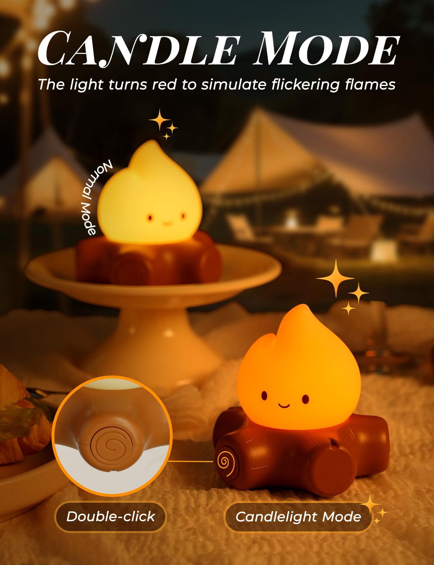 BANDIANCY Cute Campfire Night Light,Portable Rechargeable Lamp, Baby Night Light Nursery Decor, Stepless Dimmable LED Warm Yello