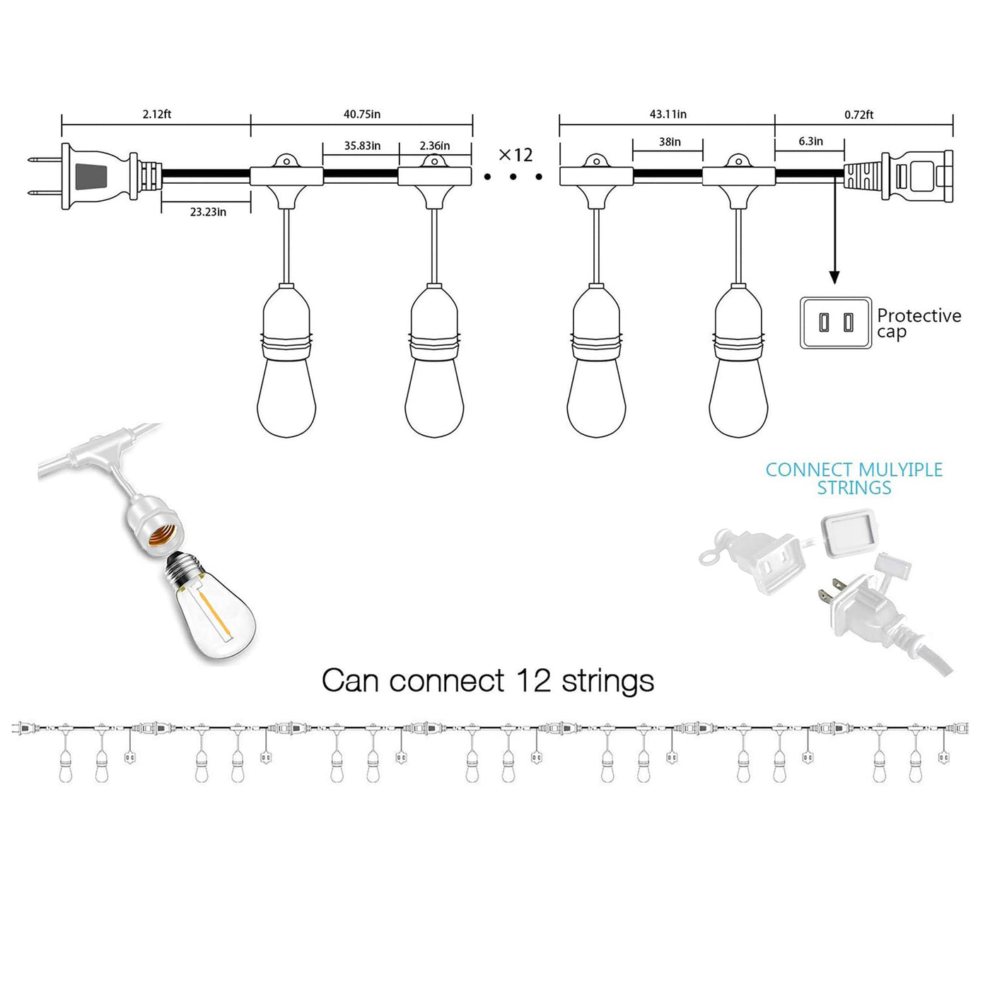 Q: Can I connect multiple sets of these string lights together?A: Absolutely! The Banord Outdoor String Lights have end-to-end connections, allowing you to connect multiple sets to achieve the desired length for your installation.
