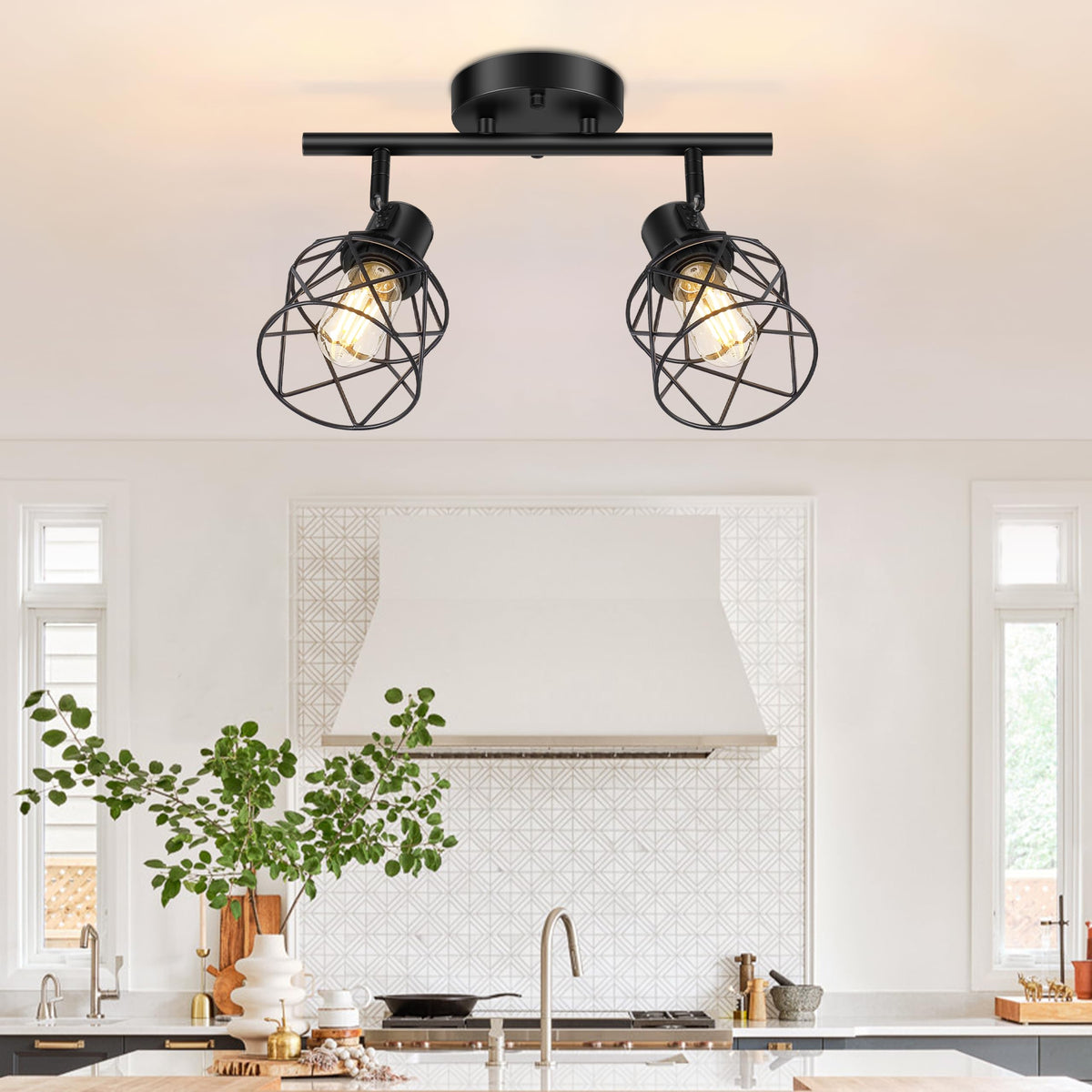 Directional Farmhouse Ceiling Light Design: Combines modern and retro styles with a metal wire cage shade.
