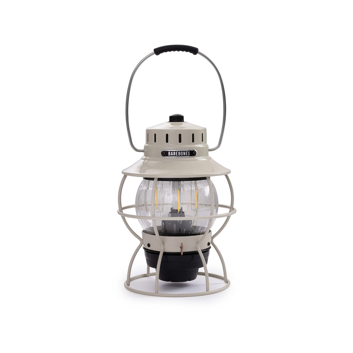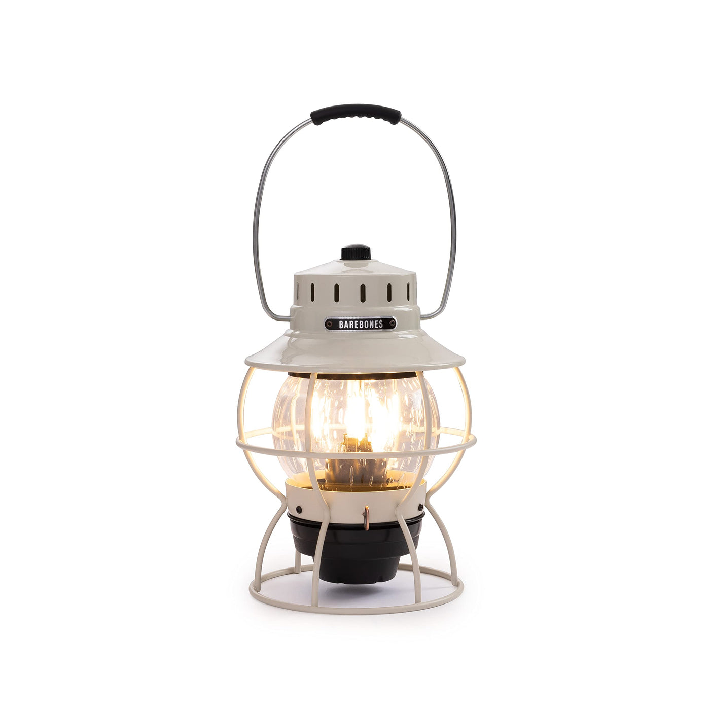 Barebones Railroad Lantern - Vintage White, Vintage-Inspired Led Camping Lantern With Rechargeable Battery - Adjustable Brightne