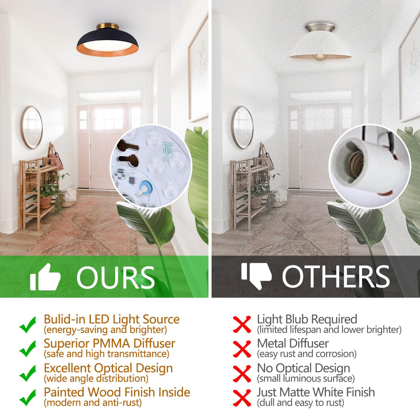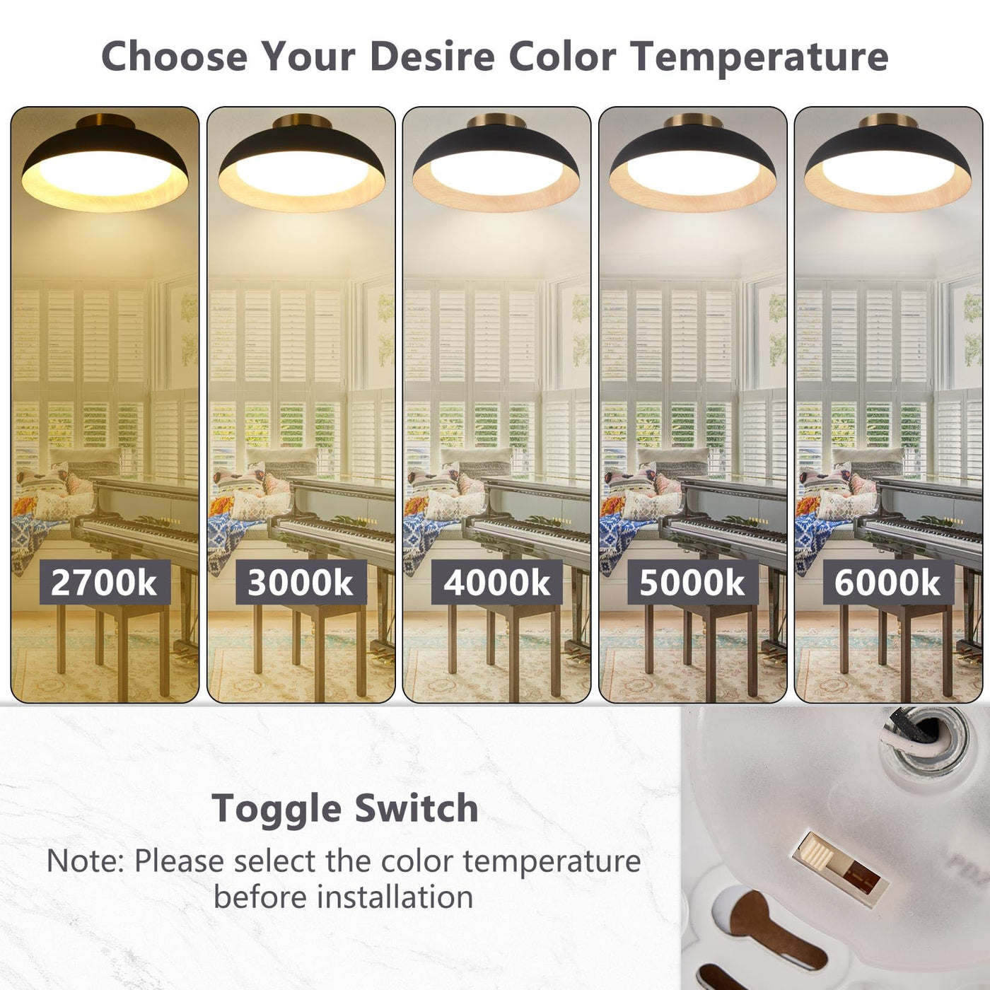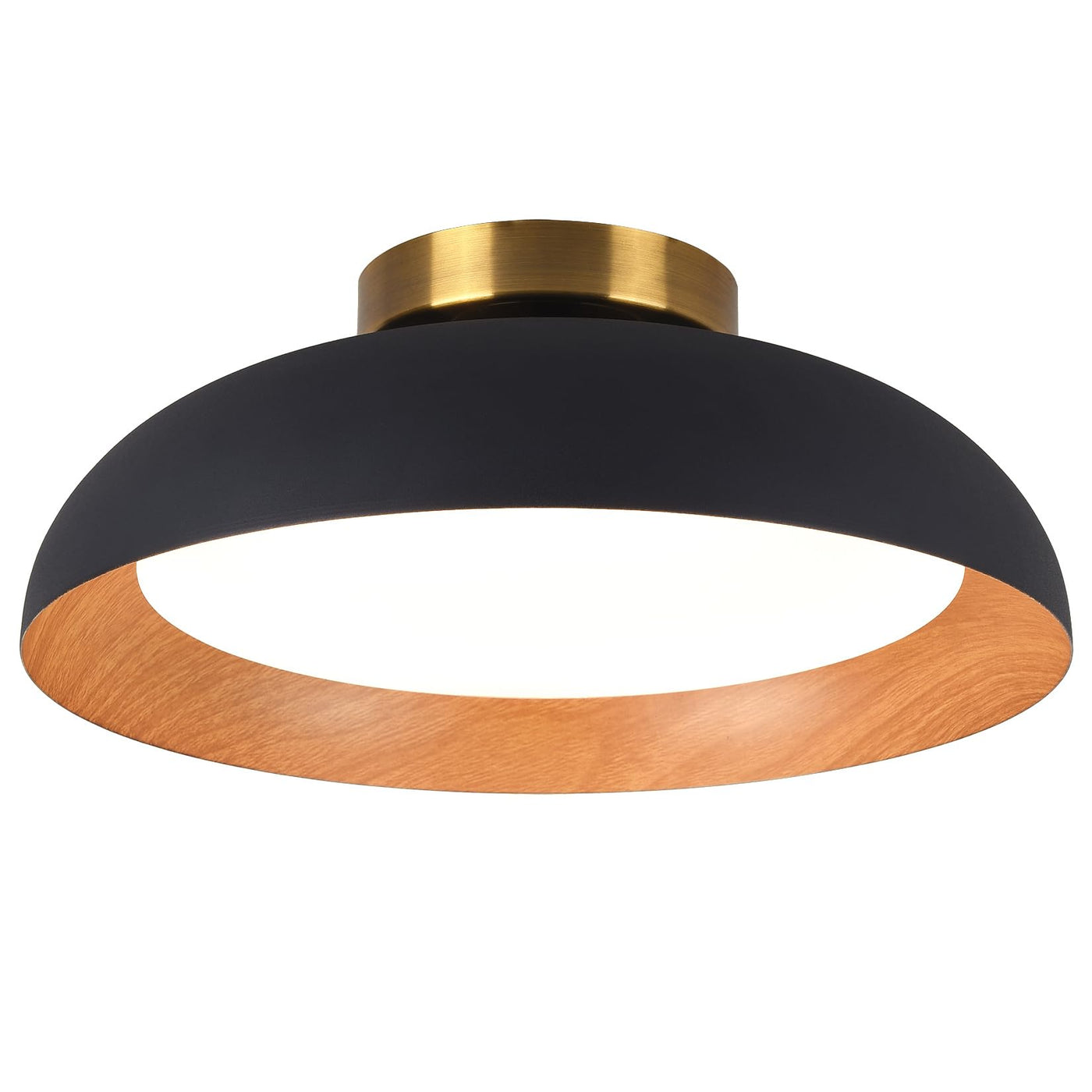Bargeni Flush Mount Ceiling Light,12.5 Inch Led Ceiling Light Fixture,5Cct Dimmable/2700K-6000K/20W, Matte Black With Wood Accen