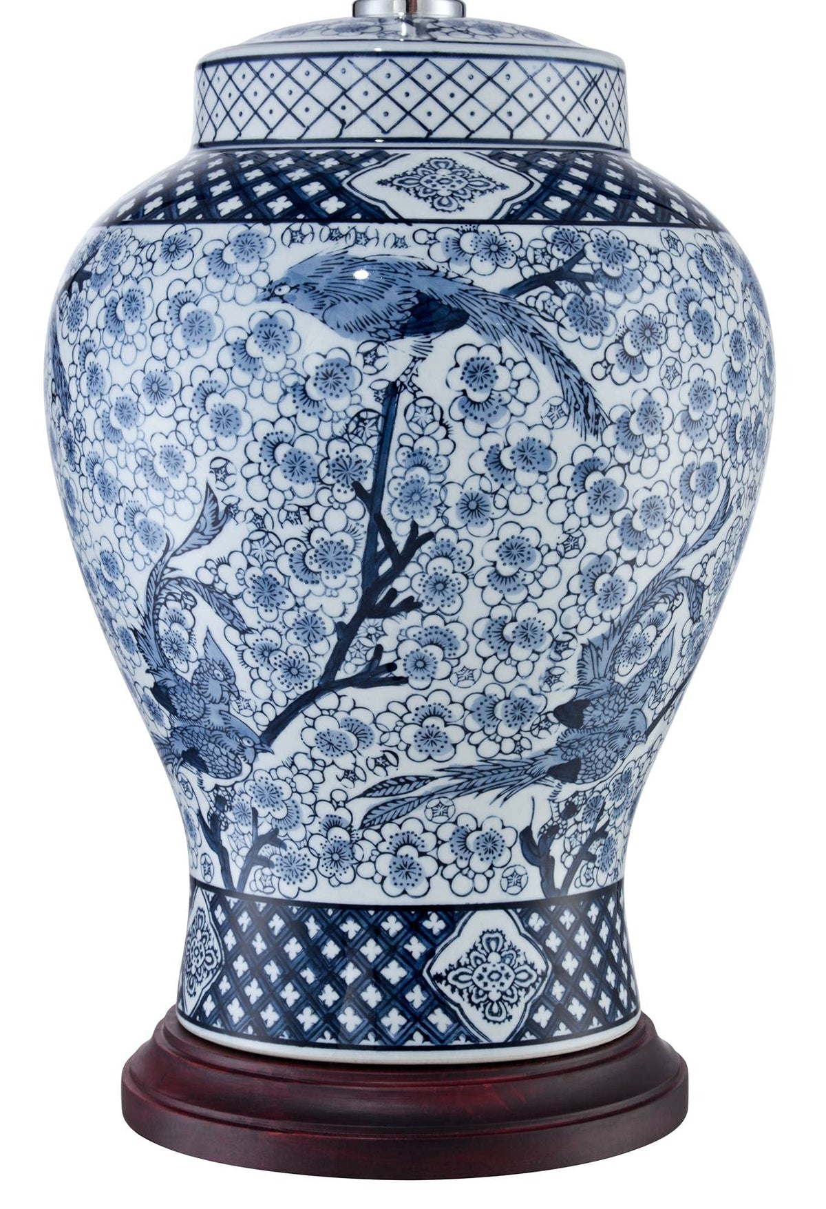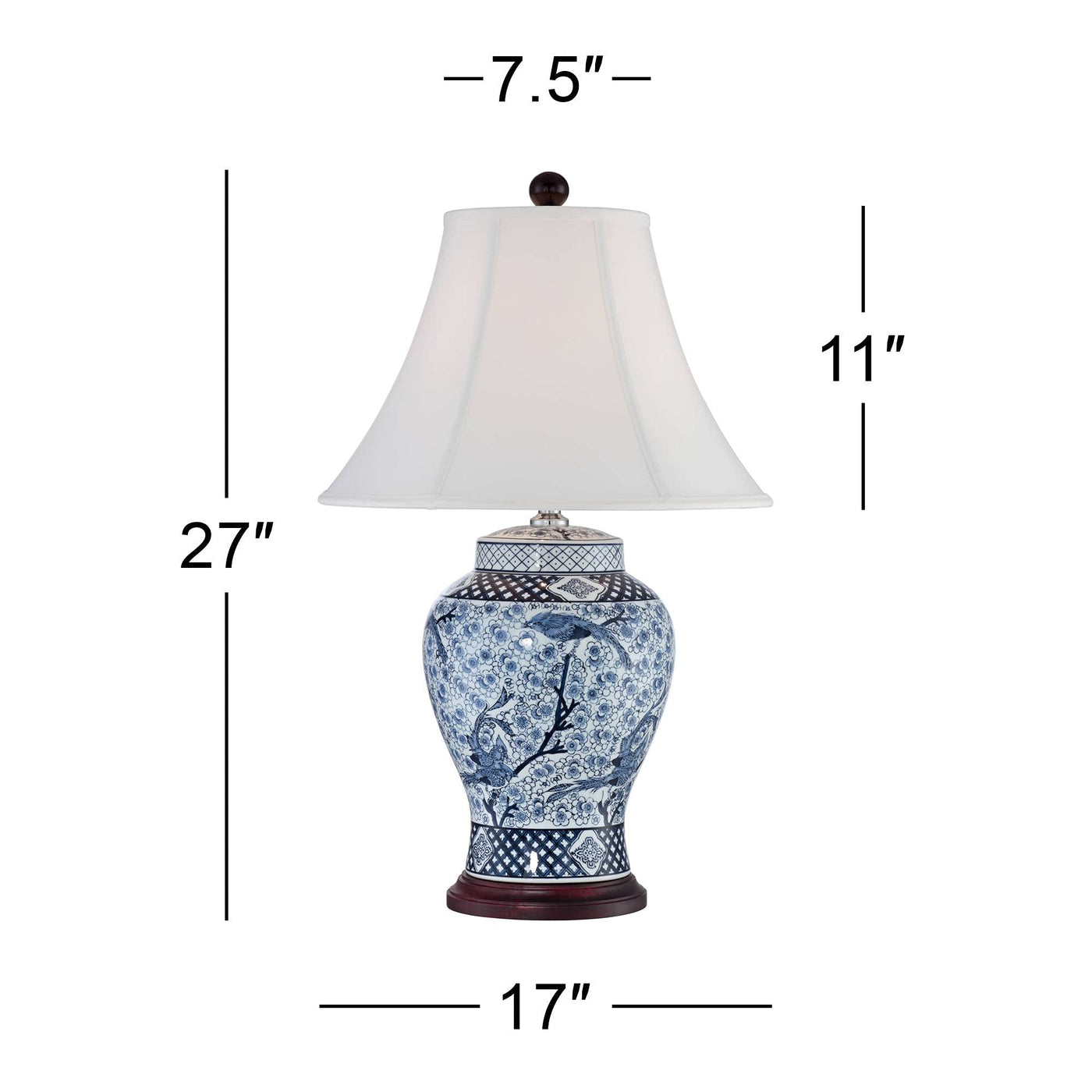 Barnes And Ivy Shonna Asian Chinese Ginger Jar Table Lamp 27'' Tall Porcelain Blue White Bird And Branch Bell Shade Decor For Li