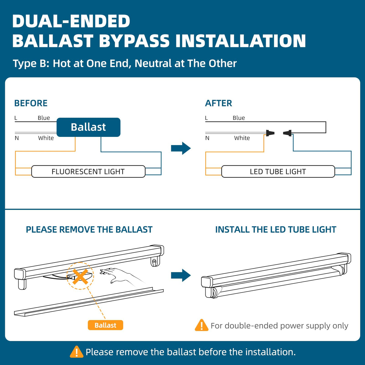 Barrina 4FT LED Ballast Bypass Bulbs, Dual-End Powered G13 24W, T8 LED Bulbs 4 Foot, 6000K Cool Daylight 3200LM, T8 T10 t12 LED