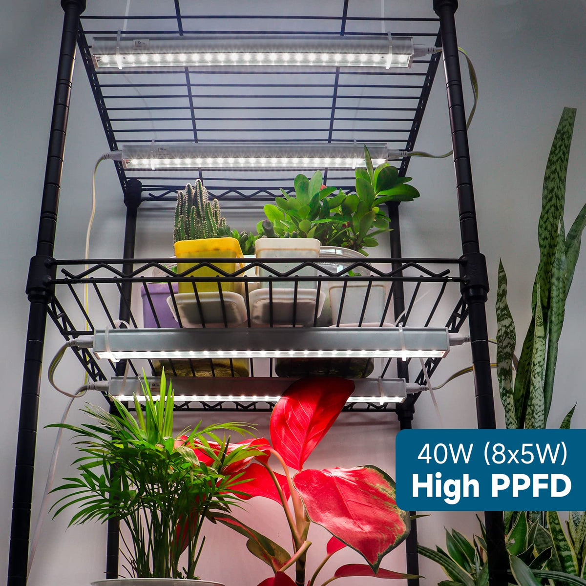 Barrina Grow Lights for Indoor Plants, 5000K White Full Spectrum Led Grow Light, 1ft Plant Grow Light, LED Grow Light Bulbs, T5 Grow Light Strip, Plug and Play, 8-Pack