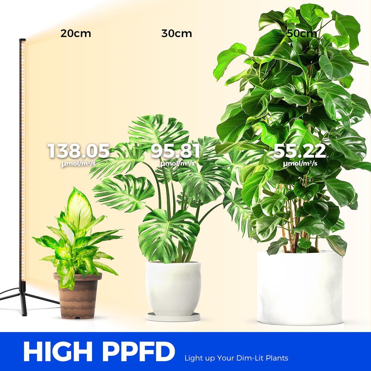 Barrina Grow Lights for Indoor Plants with Stand, 42W 169 LEDs Full Spectrum Wide Illumination Area, T10 Vertical Standing Plant Grow Light, 4FT Height with On/Off Switch and Tripod Floor Stand