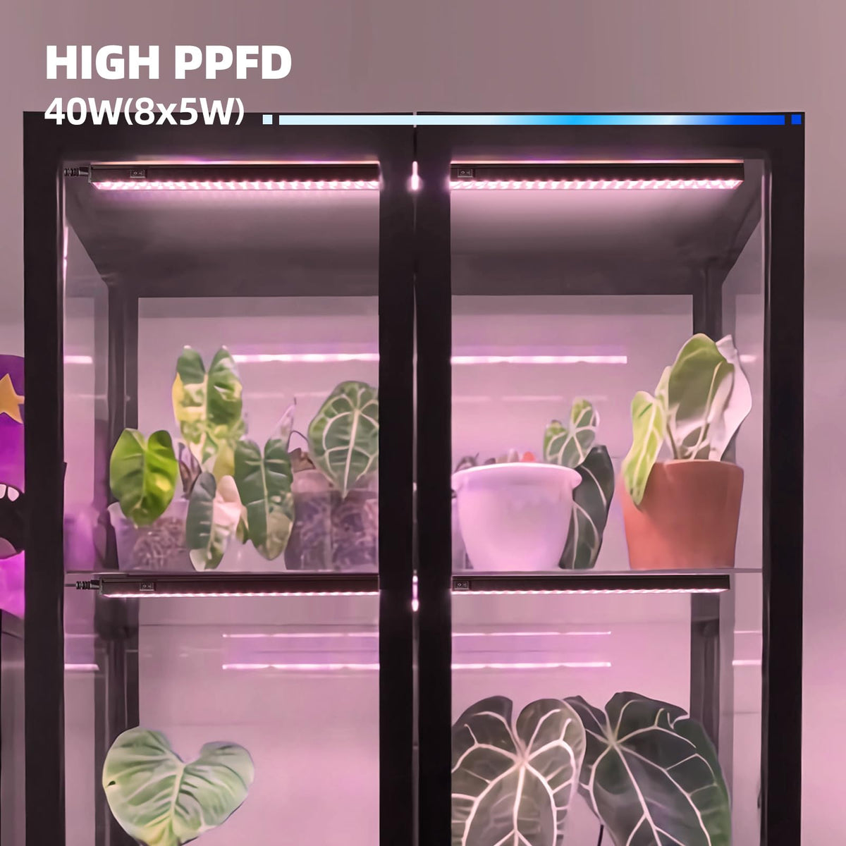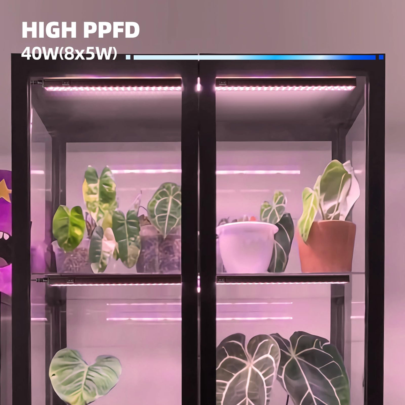 - **Super Bright and High PPFD**: Consuming only 40W (8x5W across 192 LEDs), this 1ft plant lamp replaces the conventional 250W grow lights. With over 95% of the light energy absorbed by plants, it’s perfect for seedlings, vegetative growth, and flowering cycles.