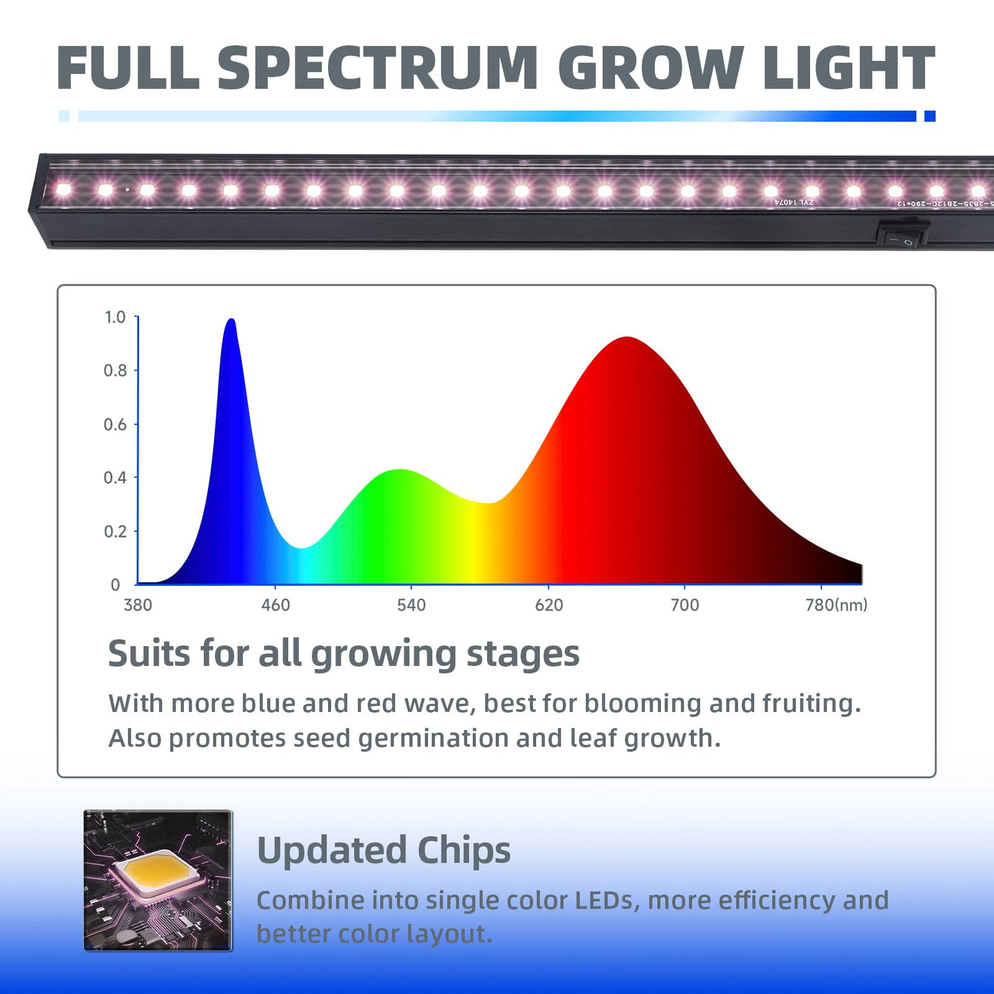 - **Full Spectrum (Pinkish White Color)**: Mimicking natural sunlight, the Barrina LED grow lights provide a full spectrum of light to support your indoor plants' growth. The carefully calculated light wave ratio ensures optimal absorption for all plant types.