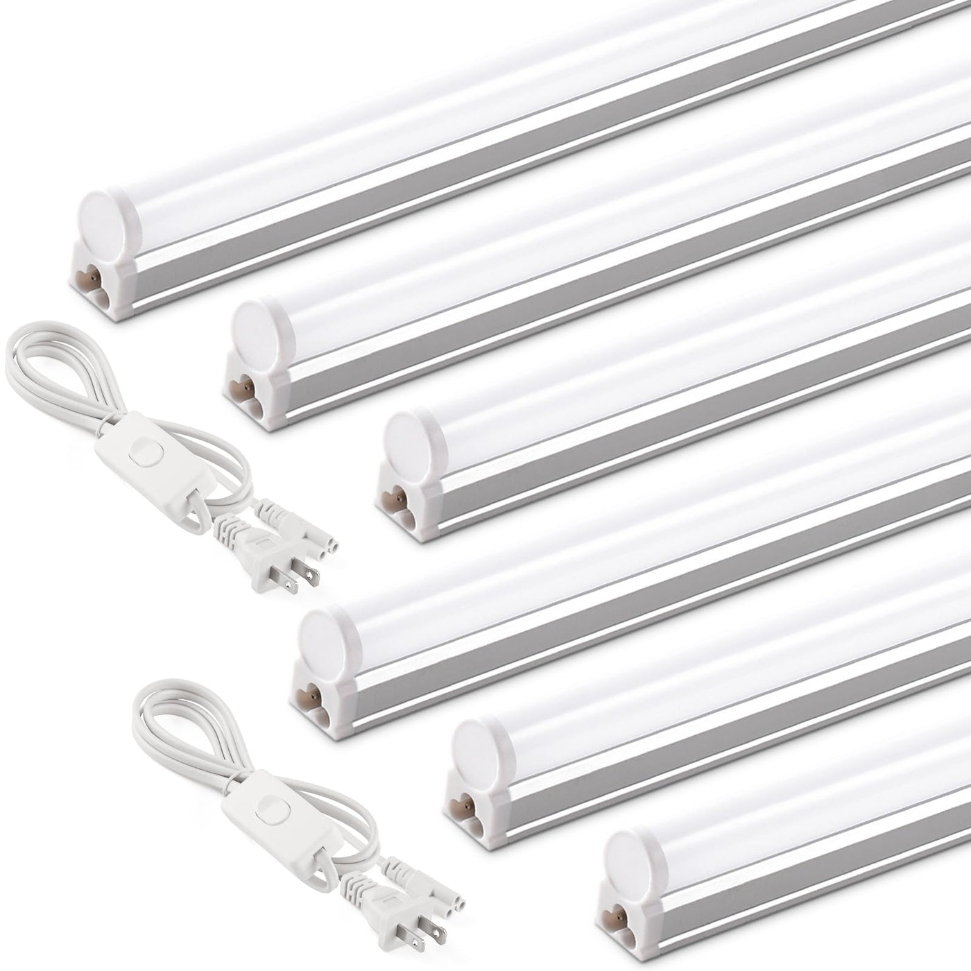 Linkable(2 pcs power cords) & Extendable: led shop lights for garage can be used separately or together with 2 pcs power cords. Could connect up to 8 tube lights together with seamless connectors or 20 inches connector cords. Compatible with Barrina OS Series Cords|6500K Super Bright: More than 2200 lumens output, 20w low power consumption|Easy Installation: Plug and play. Just use the included snap joints to hang it up and insert the plug to light it on|Wide Application: Perfect for garage, storage area, workshop, basement, home, under cabinet, warehouse, office general lighting|What You Get: 6pcs Barrina T5 4ft led shop light, 2pcs Power cords with ON/OFF switch, 2pcs Hardwire, 5pcs 20inches Connector cables, 6pcs Small connectors, 6pcs Installation accessories. Cannot be compatible with motion sensors, otherwise it will shorten the lifespan