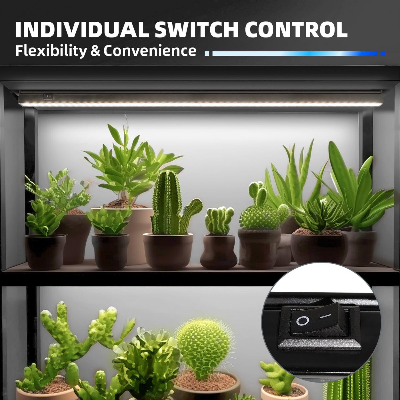 - **Separately Controllable**: Each fixture features an on/off switch, enabling you to control the lights based on your plants’ specific PPFD needs, optimizing their growth environment.