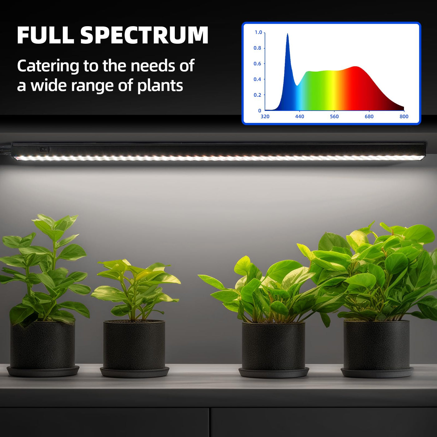 - **Full Spectrum Lighting**: Emits 5000K daylight white light, closely mimicking natural sunlight to support all stages of plant growth, from seeding to blooming.