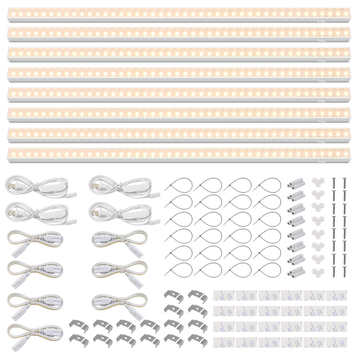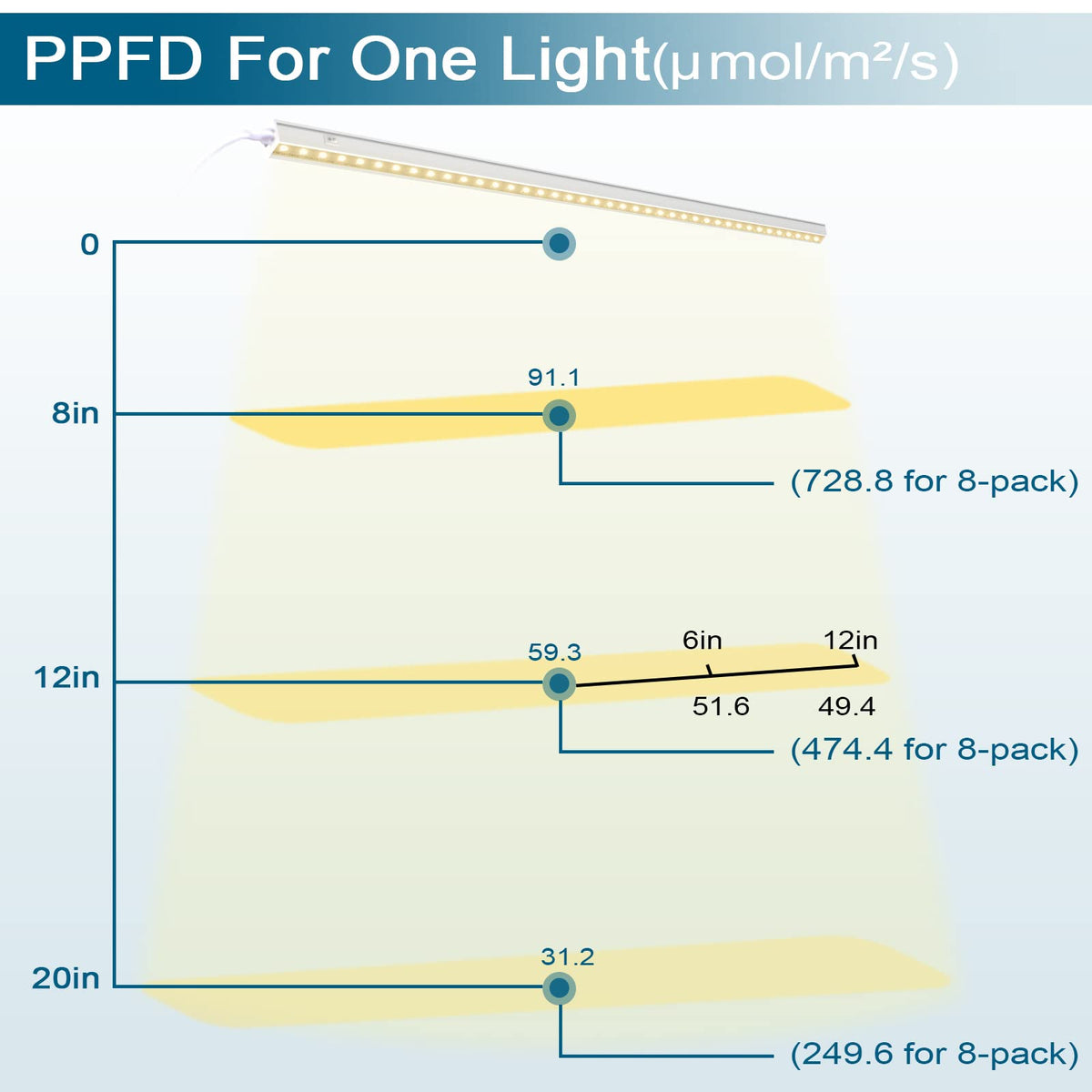 - **Comprehensive Package**: The set includes 8 Barrina T5 LED grow lights, 4 power cords with on/off switches, installation clips, double-sided tapes, cable ties, connecting cords, and small connectors, all backed by a 2-year warranty for peace of mind.
