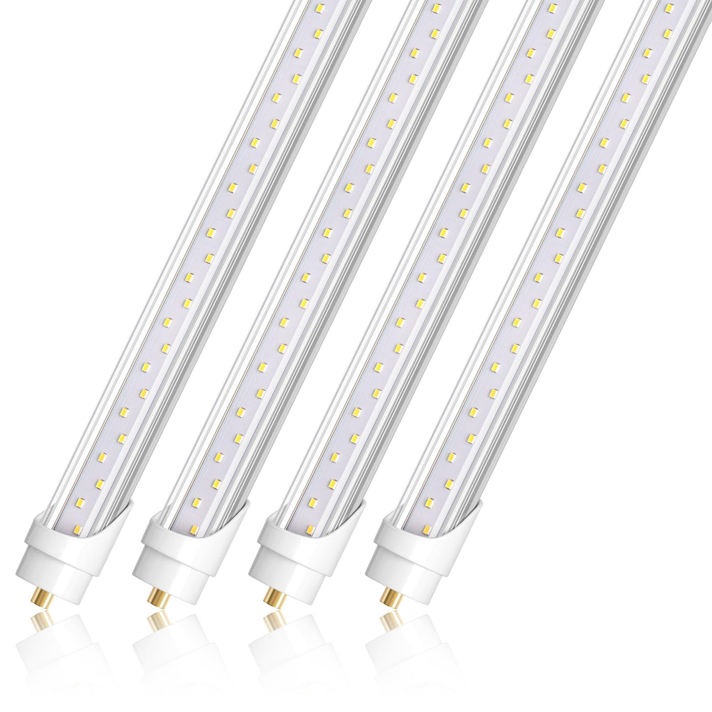 Introduction: Barrina 8ft LED tubes offer a higher standard in commercial lighting These clear LED tube lights are compatible with T8, T10 and T12 fluorescent fixtures, making it easy to retrofit and direct wire the tubes with a ballast bypass installation Save energy by replacing 120W fluorescent tubes with 44W LED tubes, and see the instant cost-savings on your electricity bill Specification Package: 4-pack Length: 96(8ft) Power: 44W ccT: 6500K Beam Angle: 160 degrees Luminous Flux: 120130lm per watt color Rendering Index (cRI): 85 Lamp Power Factor: 095 Input Voltage: Ac85277V Texture of Material: Top quality Aluminum & superior Pc Features Super bright - Each light has up to 5000lm output Energy saving - compare with fluorescent lights, save 65% on your electricity bill High quality - Barrina 8FT LED Light Tube uses high grade SMD chips and components to ensure reliability Dual row led design - These 8ft lights has efficient heat dissipation and bring more light Long lifespan - Normal service up to 50000 hours Wide application - Widely used in garage, warehouse, supermarkets, offices, convenience stores, gas stations, shops, hotels, etc