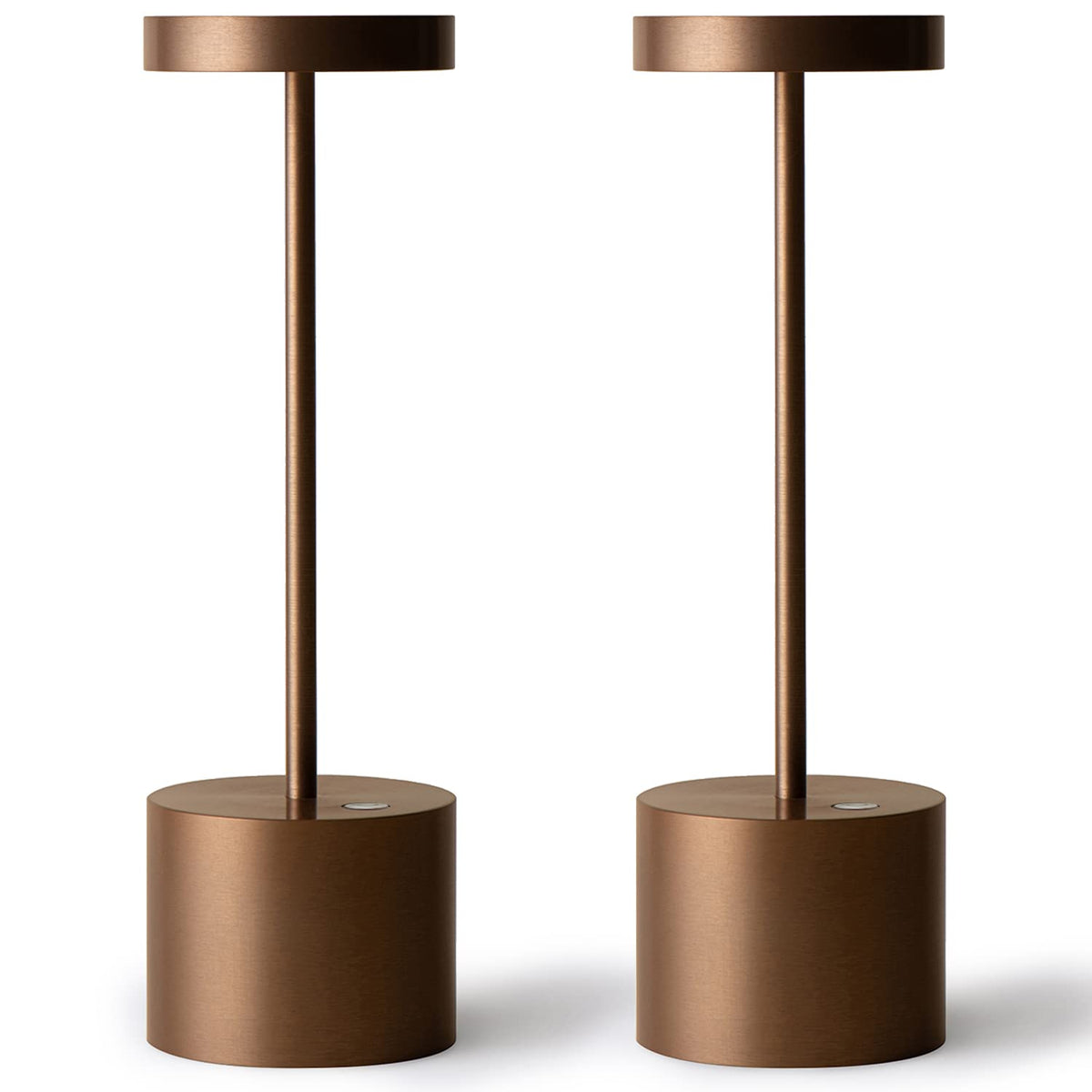 Barryca Cordless Table Lamp - Rechargeable, Dimmable Metal Led Light, 2 Pack Mocha For Indoor/Outdoor