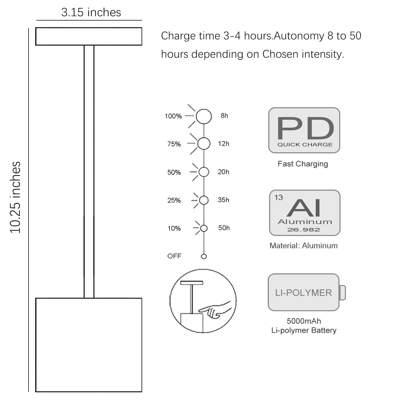 - **Cordless Convenience**: Enjoy the freedom of a battery-operated lamp with a powerful 5000mAh rechargeable battery. Experience light duration ranging from 8 to 60 hours, depending on your chosen dimming level, perfect for both everyday use and special occasions.