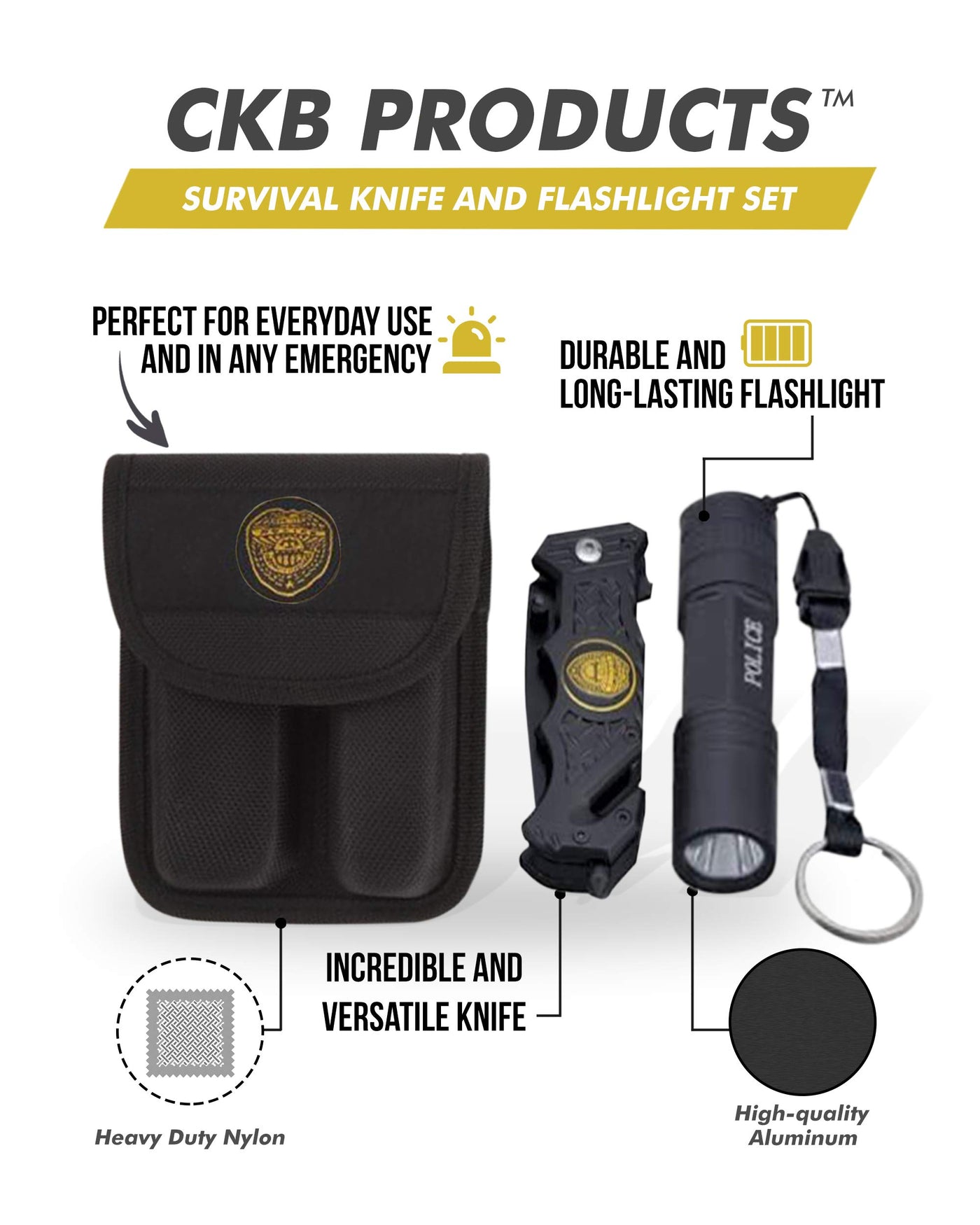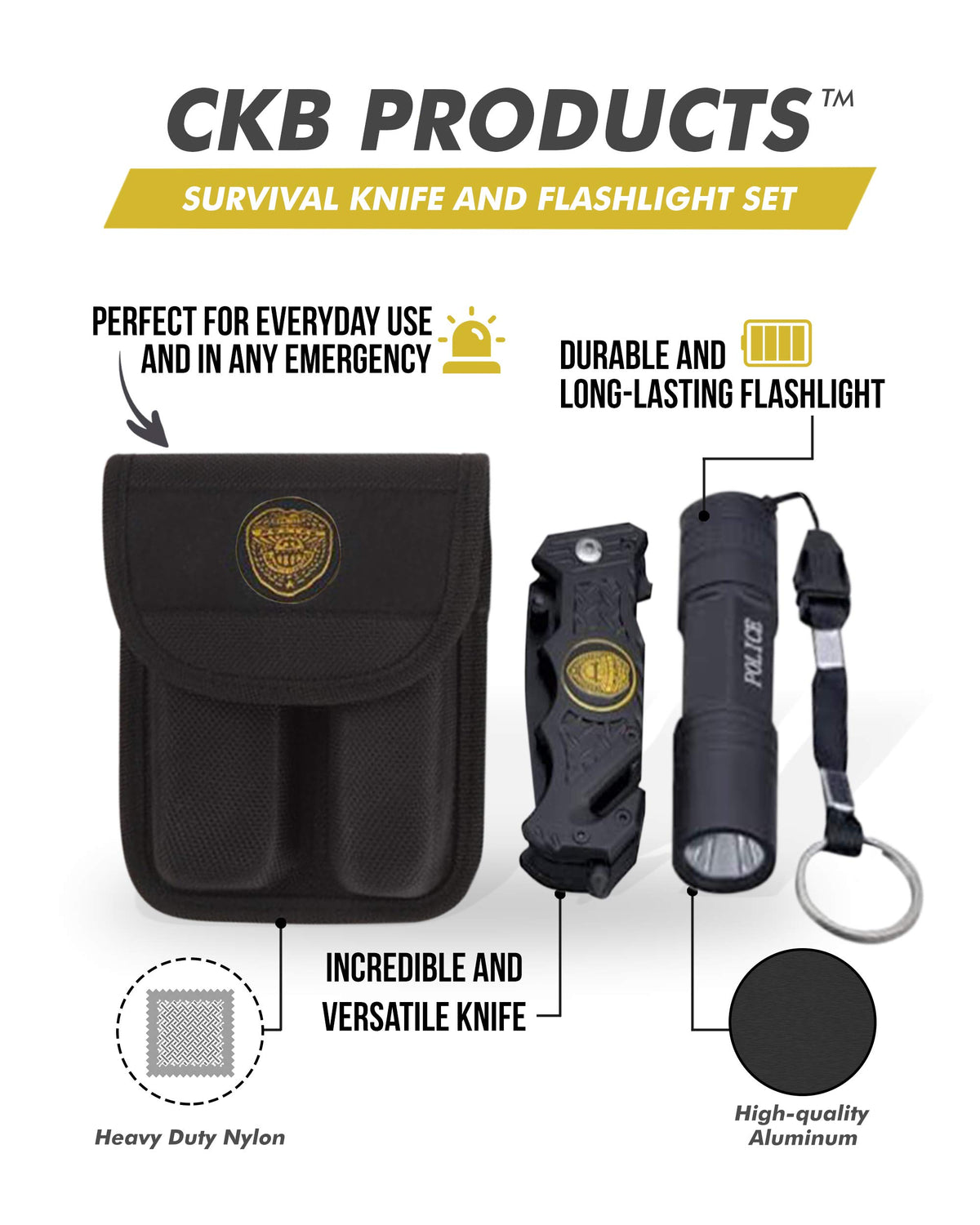 Durable Police knife and flashlight set designed for first responders and outdoor enthusiasts.