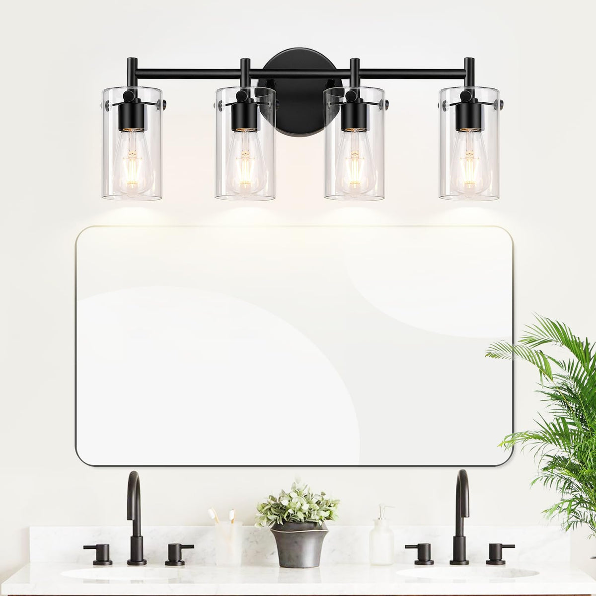 Bathroom Light Fixtures 2023 Upgrade, 4-Light Matte Black Bathroom Vanity Light, Black Bathroom Lights Over Mirror With Clear Gl