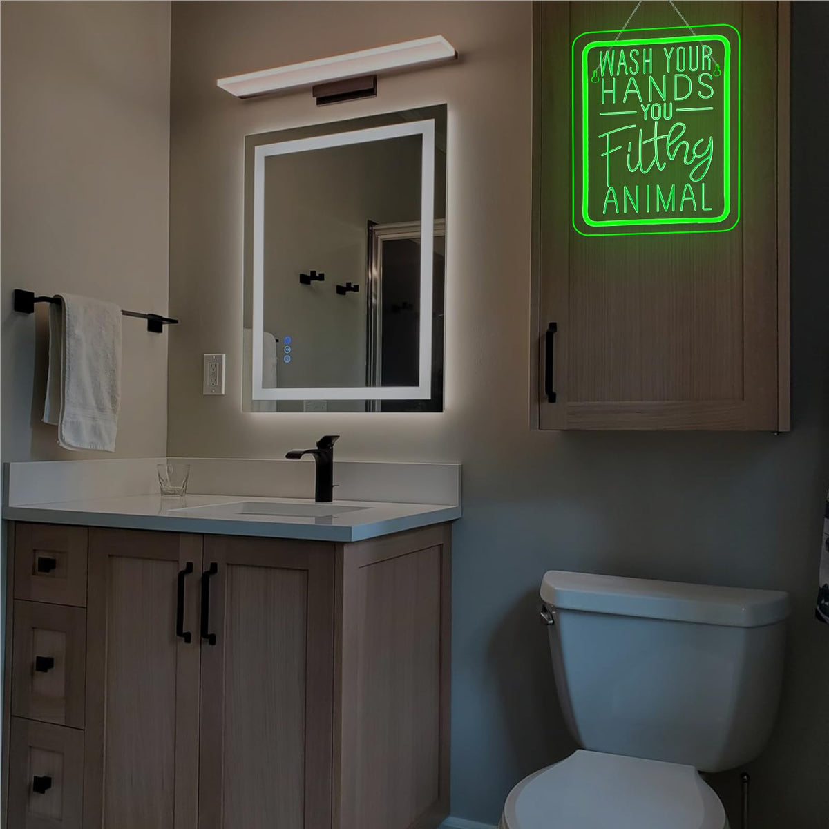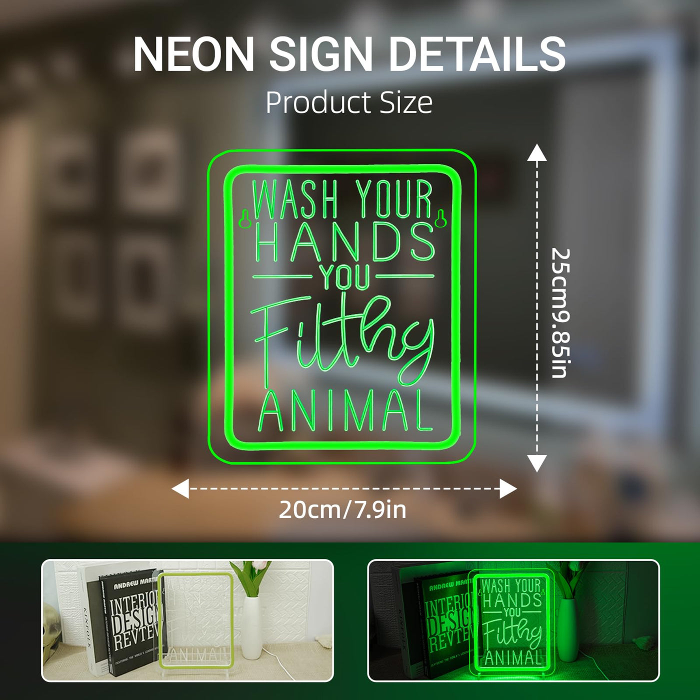 Bathroom Neon Sign Wash Your Hands You Filthy Animal Neon Signs For Wall Decor Funny Led Lights Green Light Up For Home Restroom Toilets Bar Party Decortion Interesting Gifts
