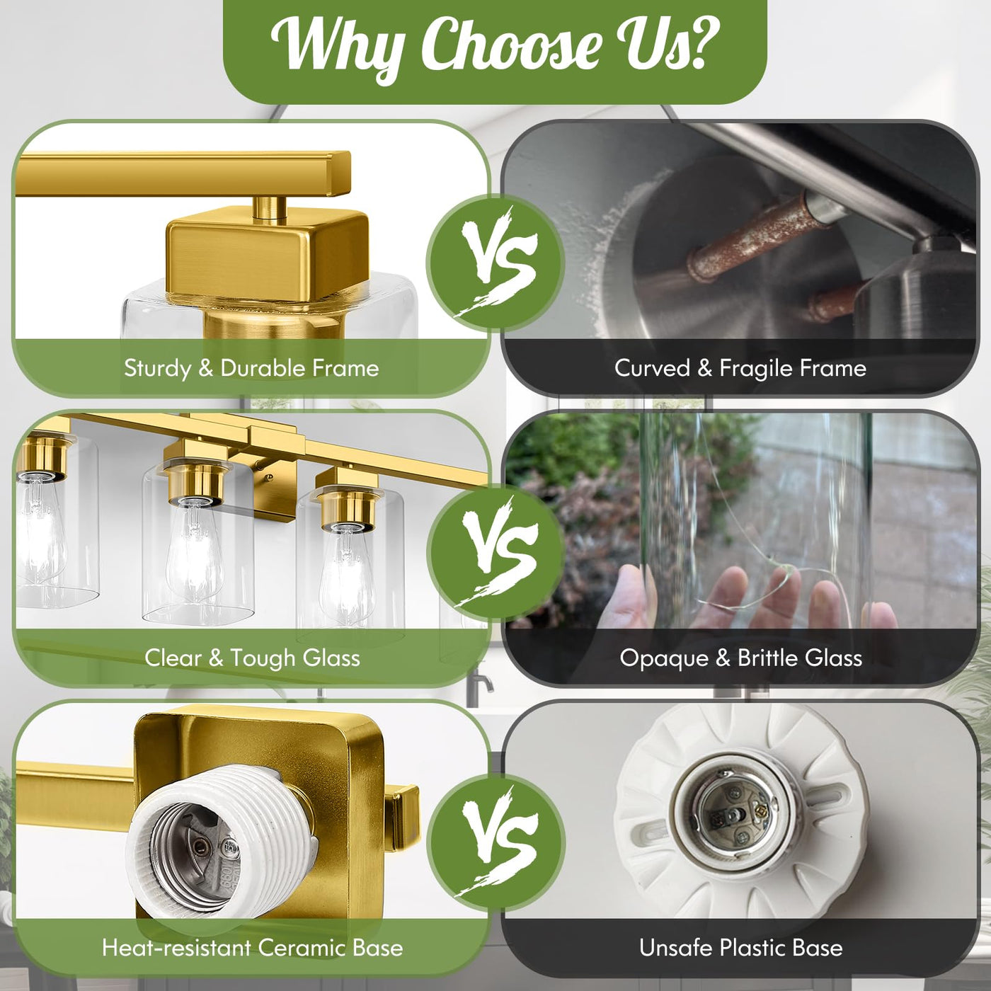 Bathroom Vanity Light, 4-Light Modern Matte Gold Wall Sconce Lighting With Clear Glass Shade, Gold Wall Lights,Bath Vintage Wall