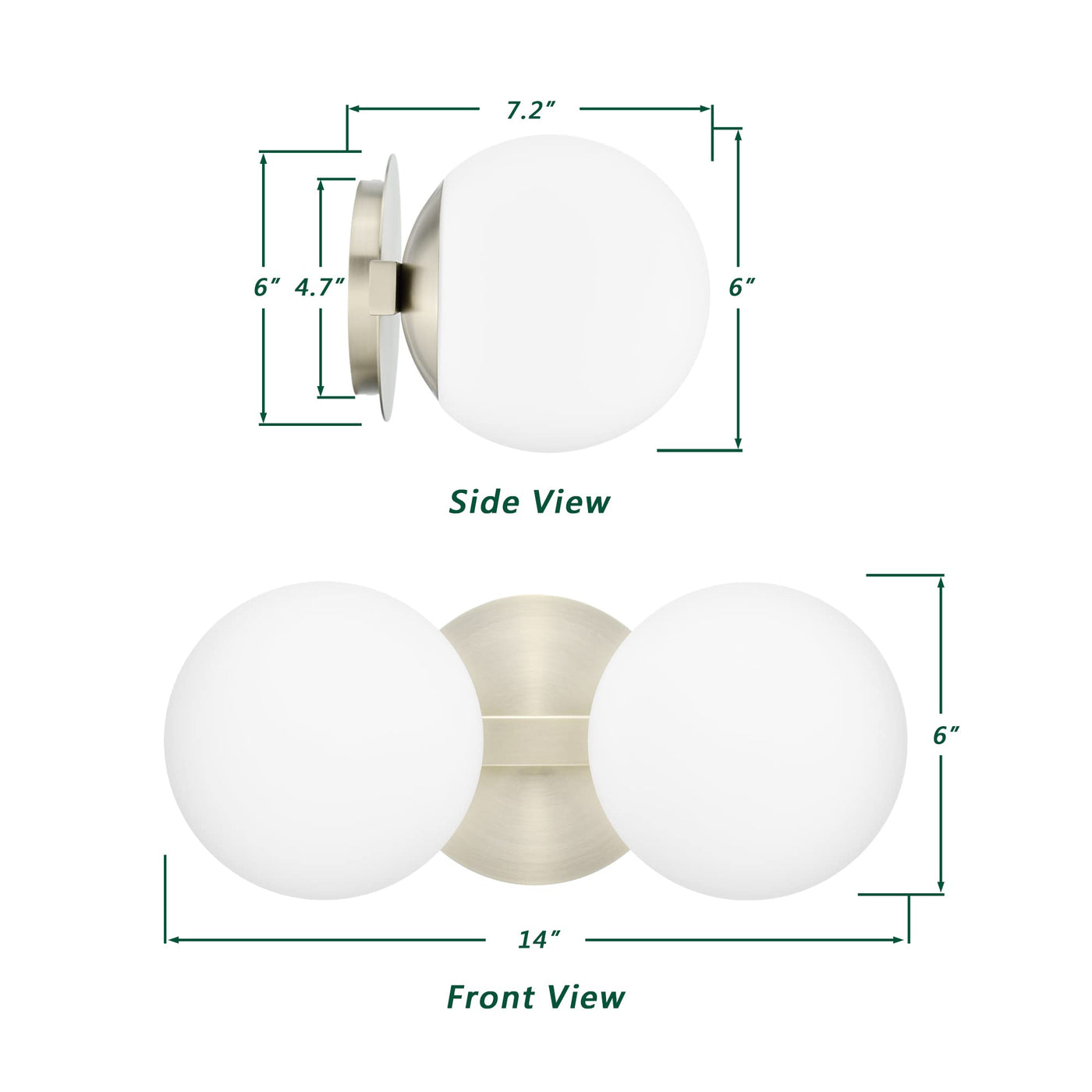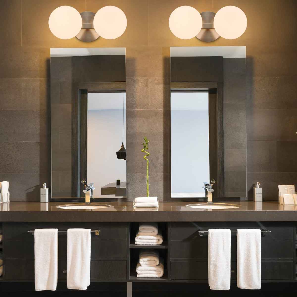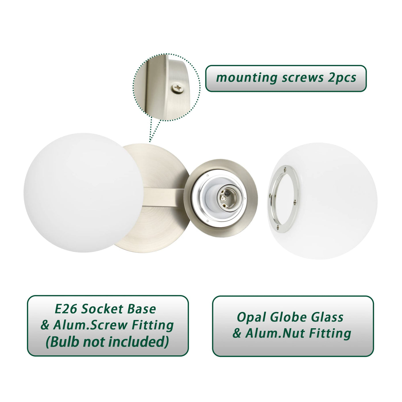 Bathroom Vanity Light Fixtures, Modern 2 Lights Globe Wall Sconce Lighting Brushed Nickel, Porch Wall Mount Light Fixture For Ba