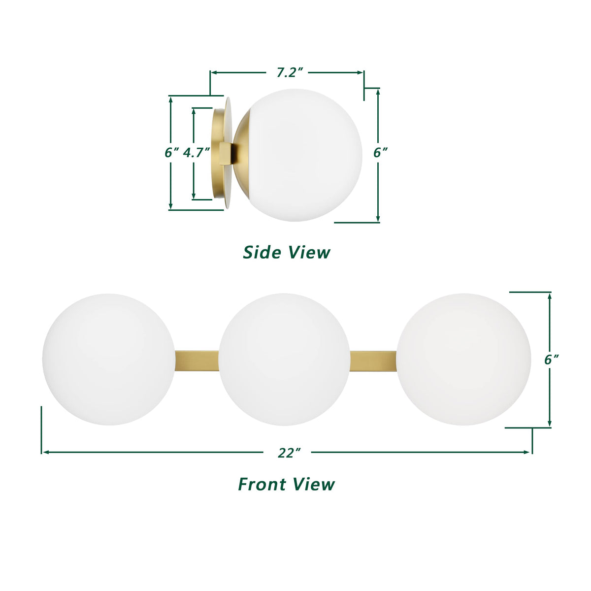 The Perfect 3-Light Bathroom Vanity Light Fixtures Style: Modern / Metro Finish: Aged Brass Material: Metal & Glass Dimensions: 22 W x 6 H x7.2 D Bulb Requirements: This bathroom vanity light fixture uses three medium-based E26 bulb (not included) and is fully dimmable when used with a dimmable bulb and compatible dimmer switch Max Wattage: 3x60W Installation: Hardwire