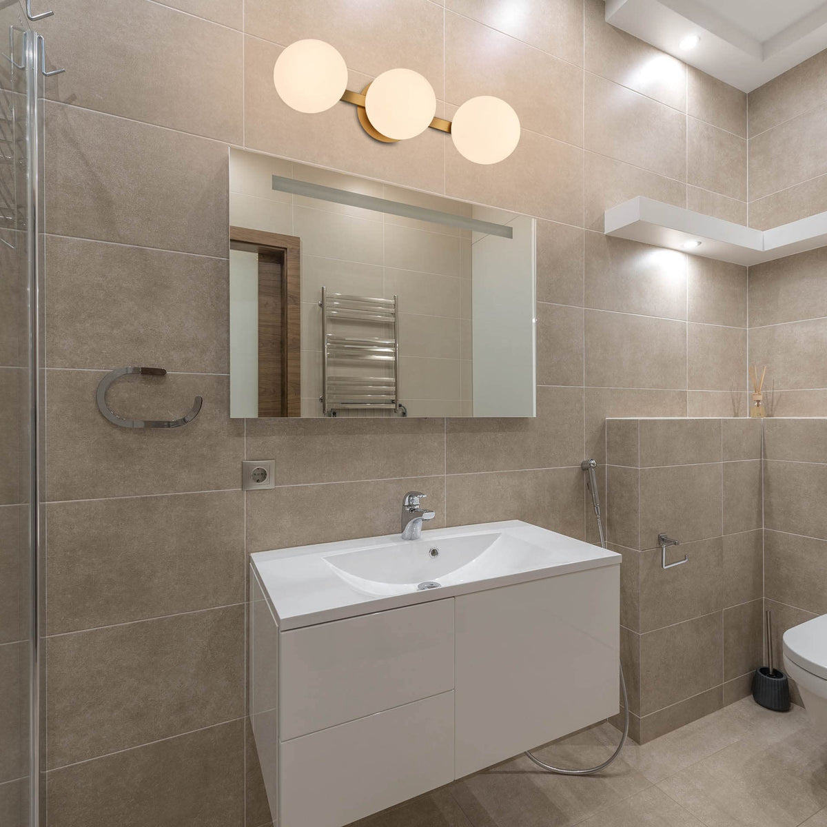 Bathroom Vanity Light Fixtures, Modern 3 Lights Globe Wall Sconce Lighting Aged Brass, Porch Wall Mount Light Fixture For Bathro