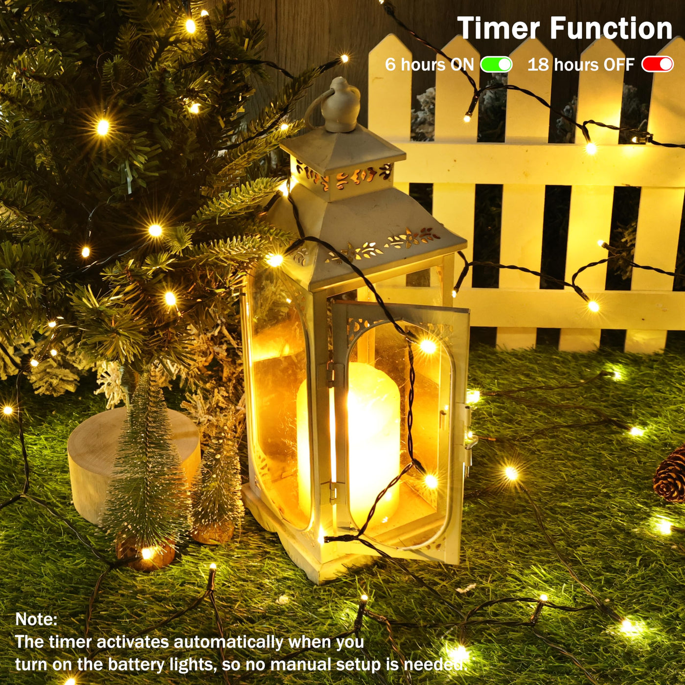 Battery Operated Christmas Lights - 2 Pack Total 33Ft 100 Led Battery String Lights 8 Modes Waterproof With Timer For Home Garden Party Holiday Christmas Tree Decoration (Green Wire Warm White)