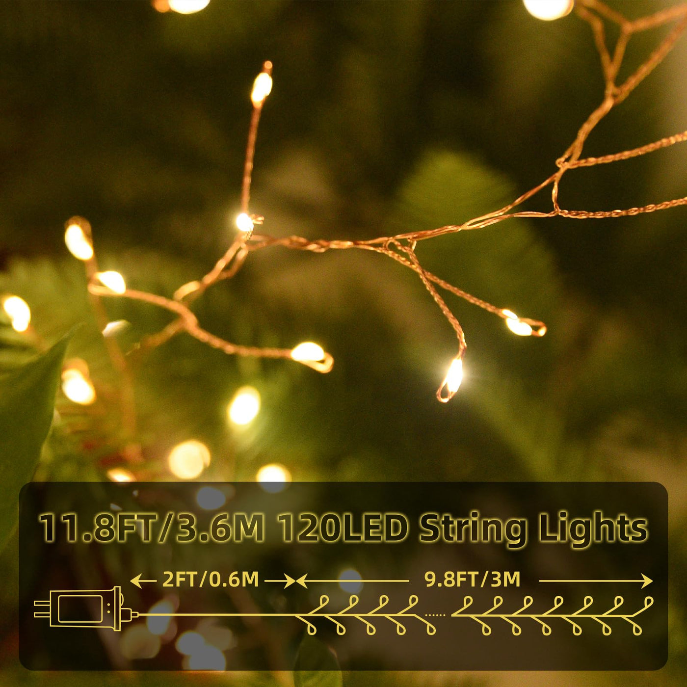 Battery Operated Fairy Lights 120 Led Warm Fairy Lights With Remote Gold Wire Starry Lights 14.7Ft String Lights With Timer Twinkle Lights For Christmas Tree Garland Wreath Wedding Party Xmas