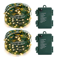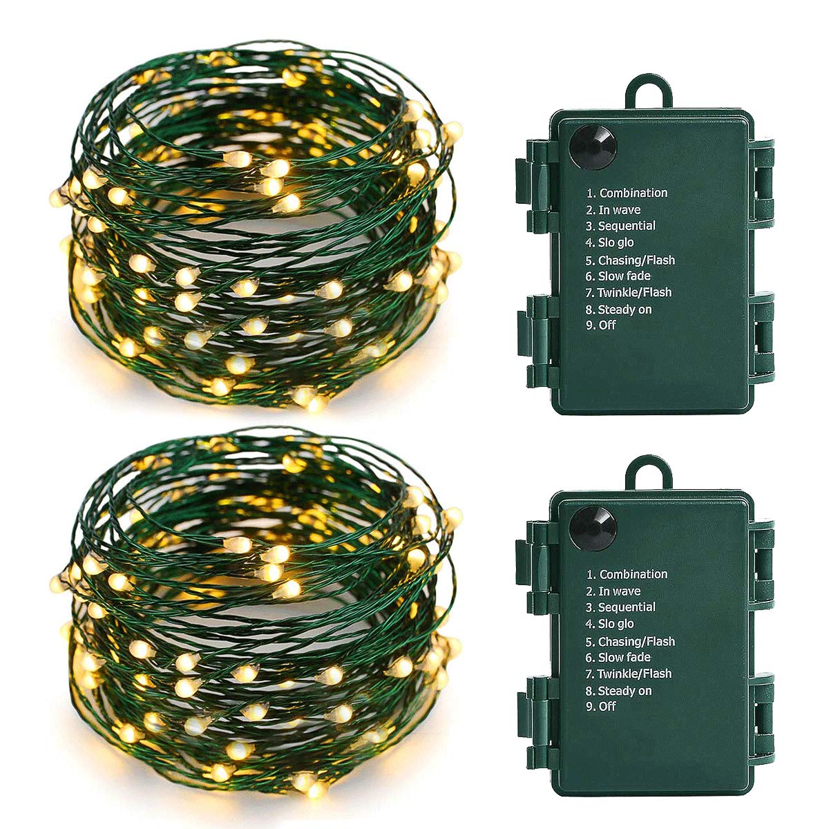 MASHANG 18FT Battery Operated String Lights - 50 Warm White Micro LEDs with Dark Green Copper Wire for Christmas, Wedding, DIY (2 Pack)