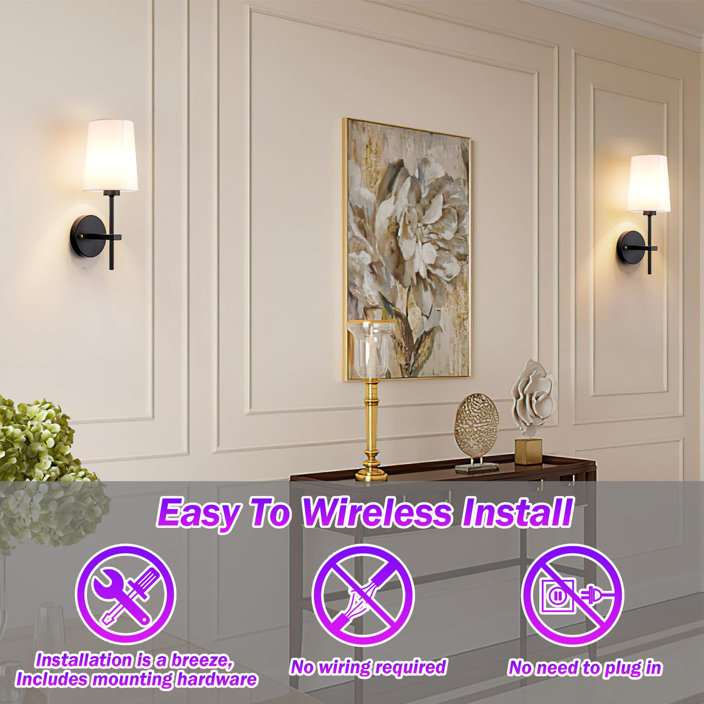 2 Pack Battery Operated Wall Sconce Modern Wall Light Fixtures Indoor Fabric Shade Wall Sconce Not Hardwired Wall Mounted Light for bedroom, living room, bedside, hallway, porch, corridor, entryway, front door and other space as you need.