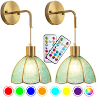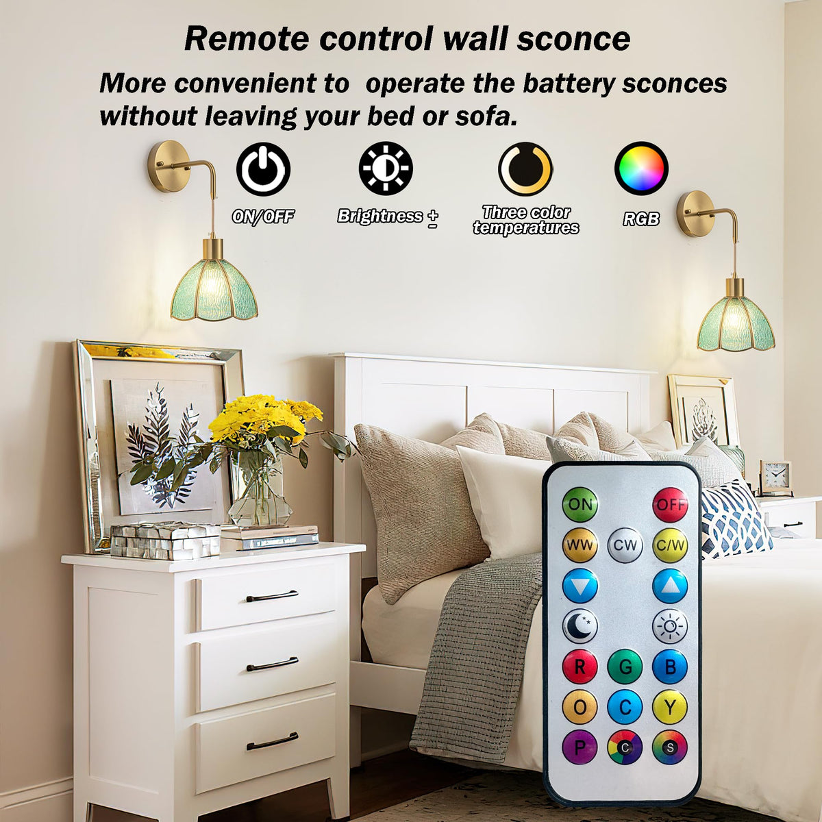 Battery Operated Wall Sconces Set Of Two, Indoor Not Hardwired Battery Wall Light With Remote Control, Rgb Color Changing Dimmable Battery Powered Wall Lamp For Bedroom, Easy To Install, Bulb Included