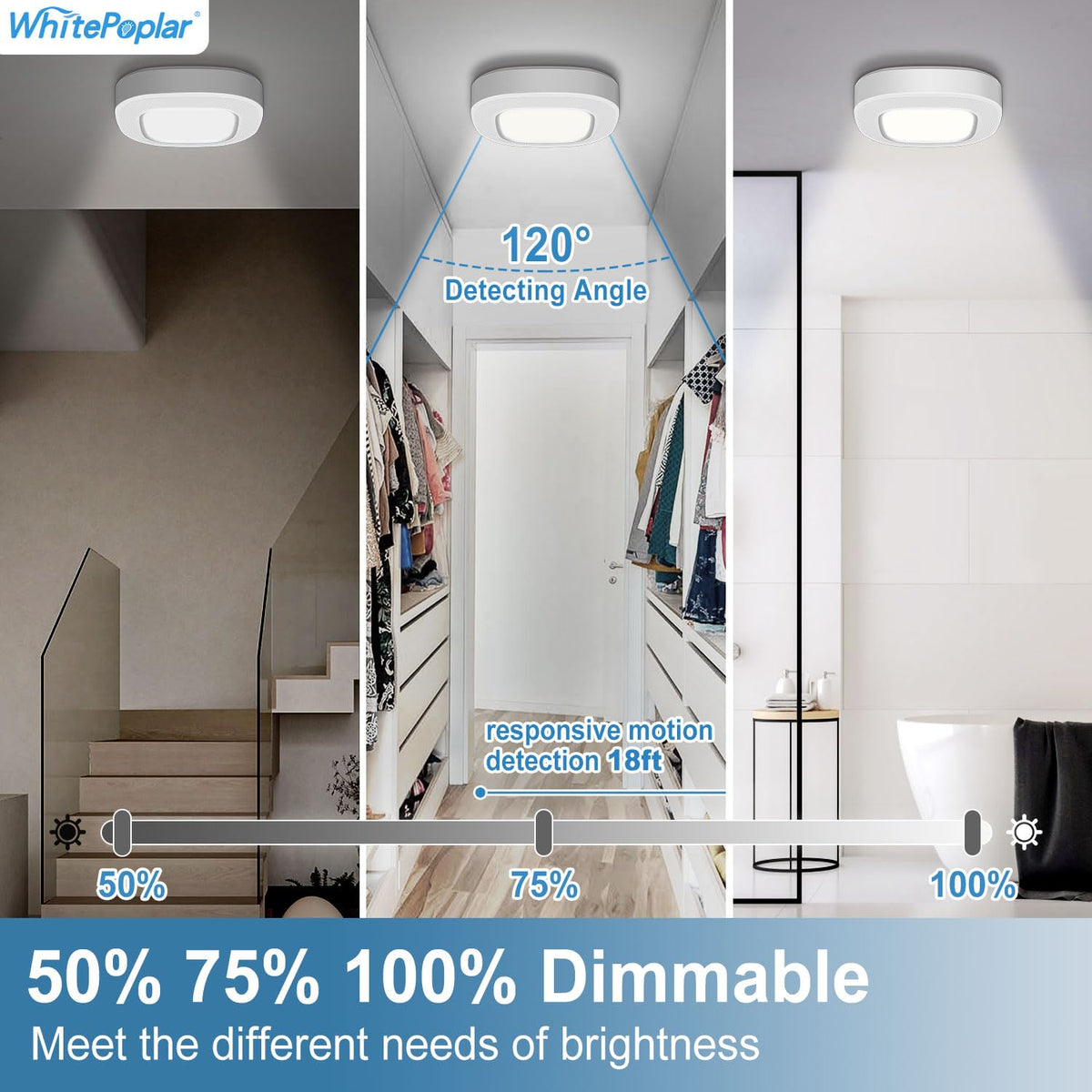 Battery Powered Motion Sensor Light Specification:? Sensitivity: Around 3-6 (8-16Ft) Meter Distance? Sensor Range: About 120 Degrees? Powered By 4 D-Cell Alkaline Batteries (Not Included)? Color Temperature: 3000K&Amp;6000K? Delay Time: 20S? Led Life: 50,000 Hours? Size: 6.7 X 6.7 X 1.4 In? Material: Abs2 Motion Activated Light Mode:1. [Sensor Mode]:When You Are Within 18 Feet, The Battery Operated Motion Sensor Light Will Come On And Turn Off Automatically 20 Seconds After The Motion.&Nbsp;2.When You Need To Stay For A Long Time, You Can Set The Wireless Ceiling Light To [Stay On] Mode And Turn It Off By Remote Control.3.&Nbsp;[Off]: The Light Will Turn Off.Easy Installation:1. Twist The Back Cover Of The Light Counterclockwise To Open.2. Use The Included Mounting Hardware To Install The Back Cover On A Wall, Ceiling, Or Anywhere You Want.3. Turn The Light Body Clockwise To Fasten It With The Back Cover Tightly.Package Contents:?1 X Wireless Motion Sensor Battery Operated Closet Light?1 X Screws?1 X User Manual