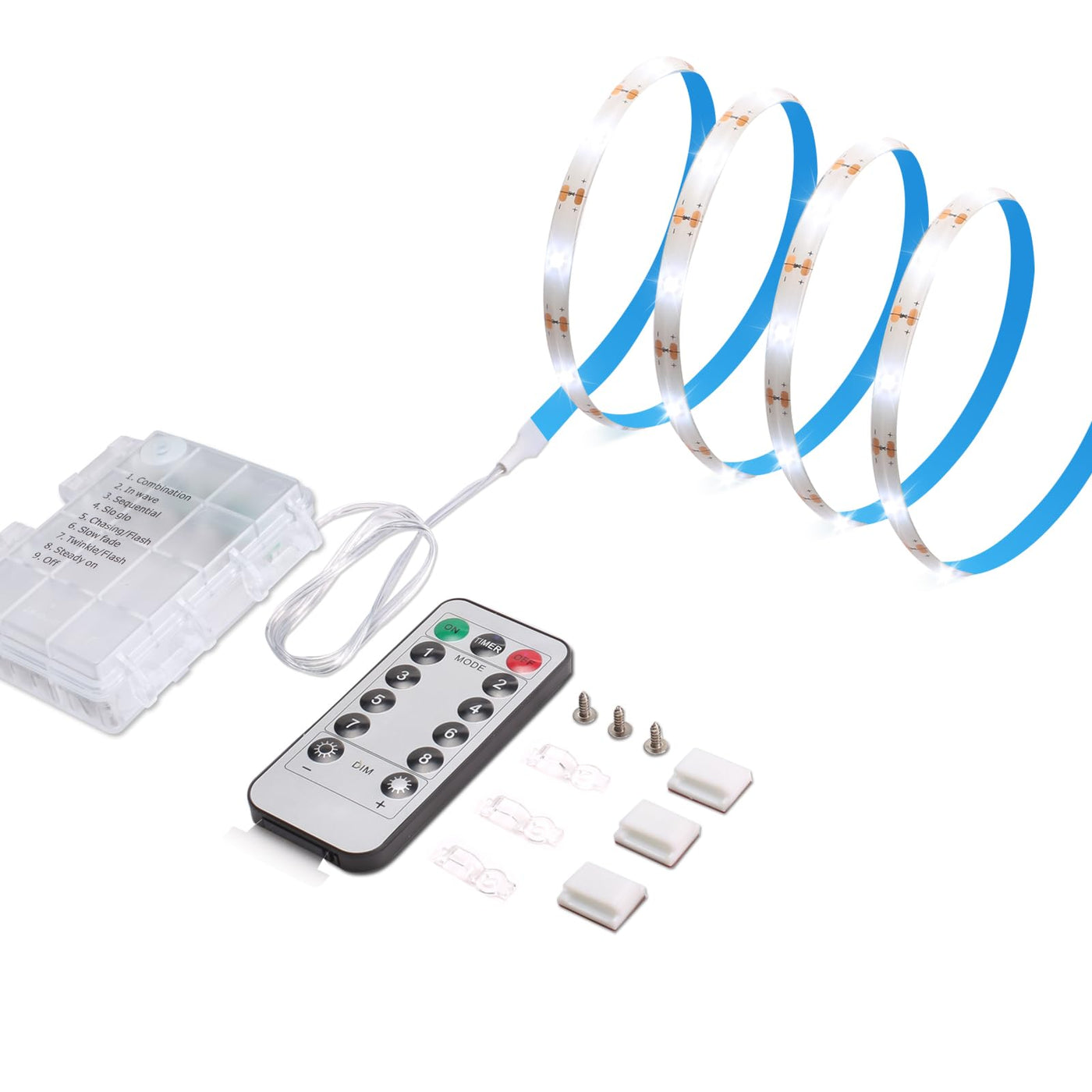 Battery Powered Strip Lights White With Remote, 3.3Ft Led Strip Light With 8 Modes, Dimmable, Timer, Self-Adhesive, Cuttable, Wa