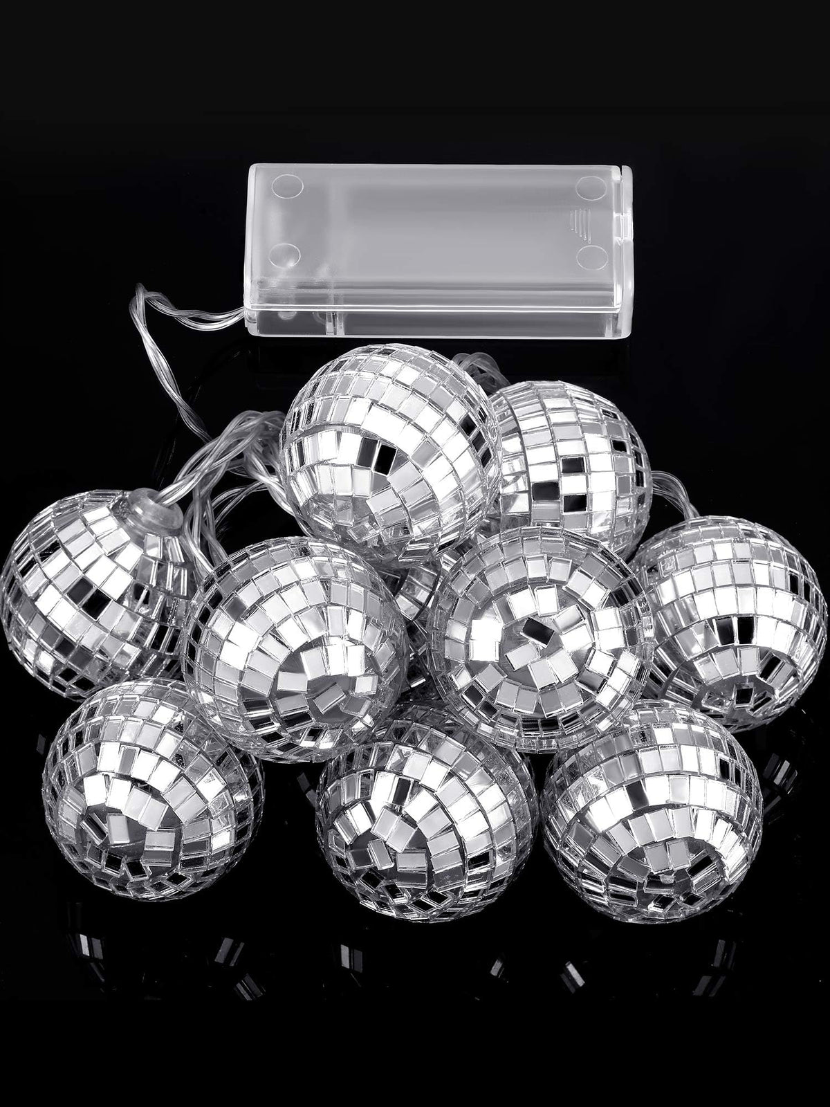 Bbto 10 Pcs Led Disco Ball String Light Battery Powered Mirror Ball Ornaments 70S 80S 90S Disco Party Supplies(Multi Color,1.57