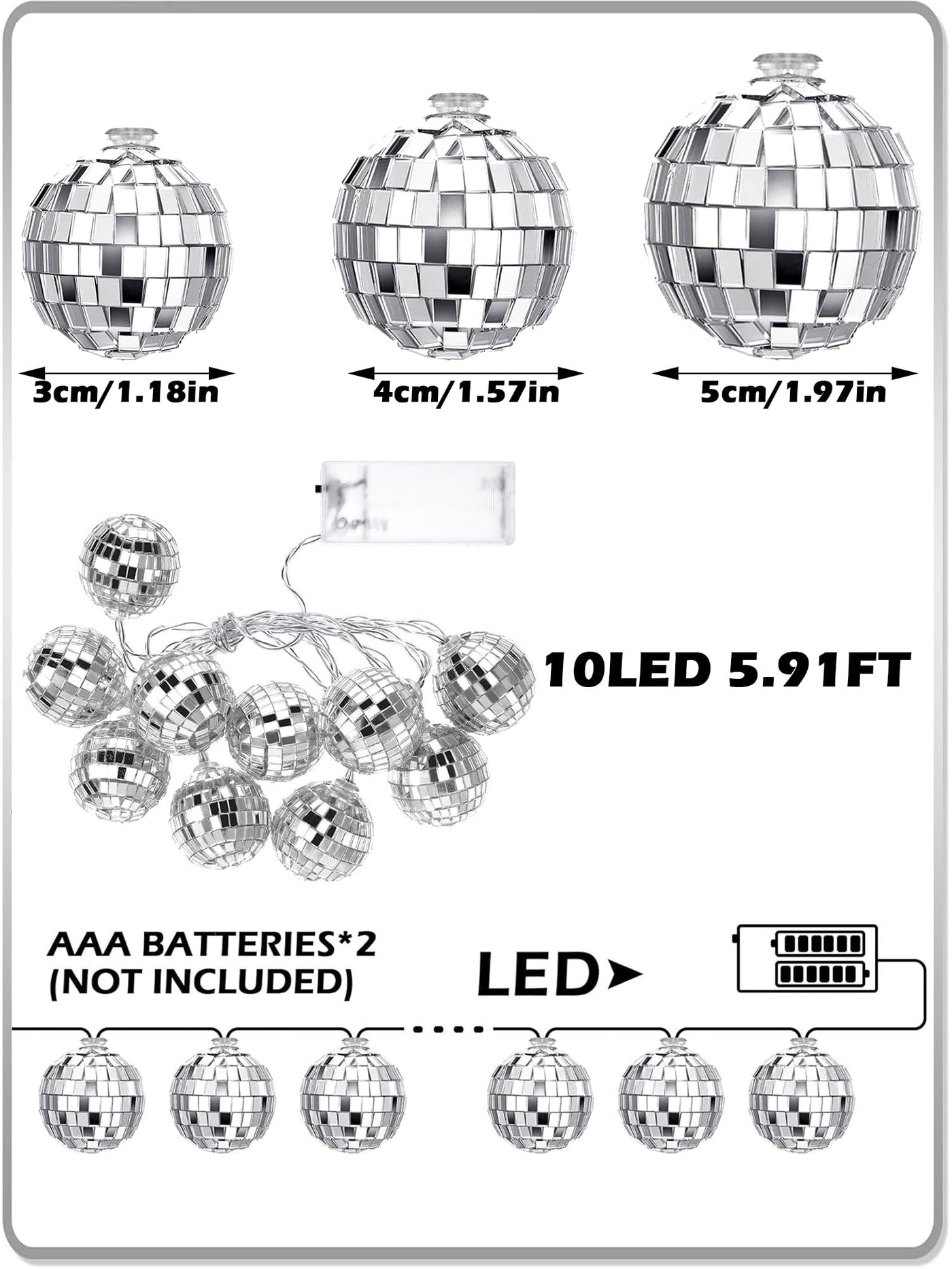 Package Content: Includes a long string of disco ball lights, featuring a total of 10 LED lights.