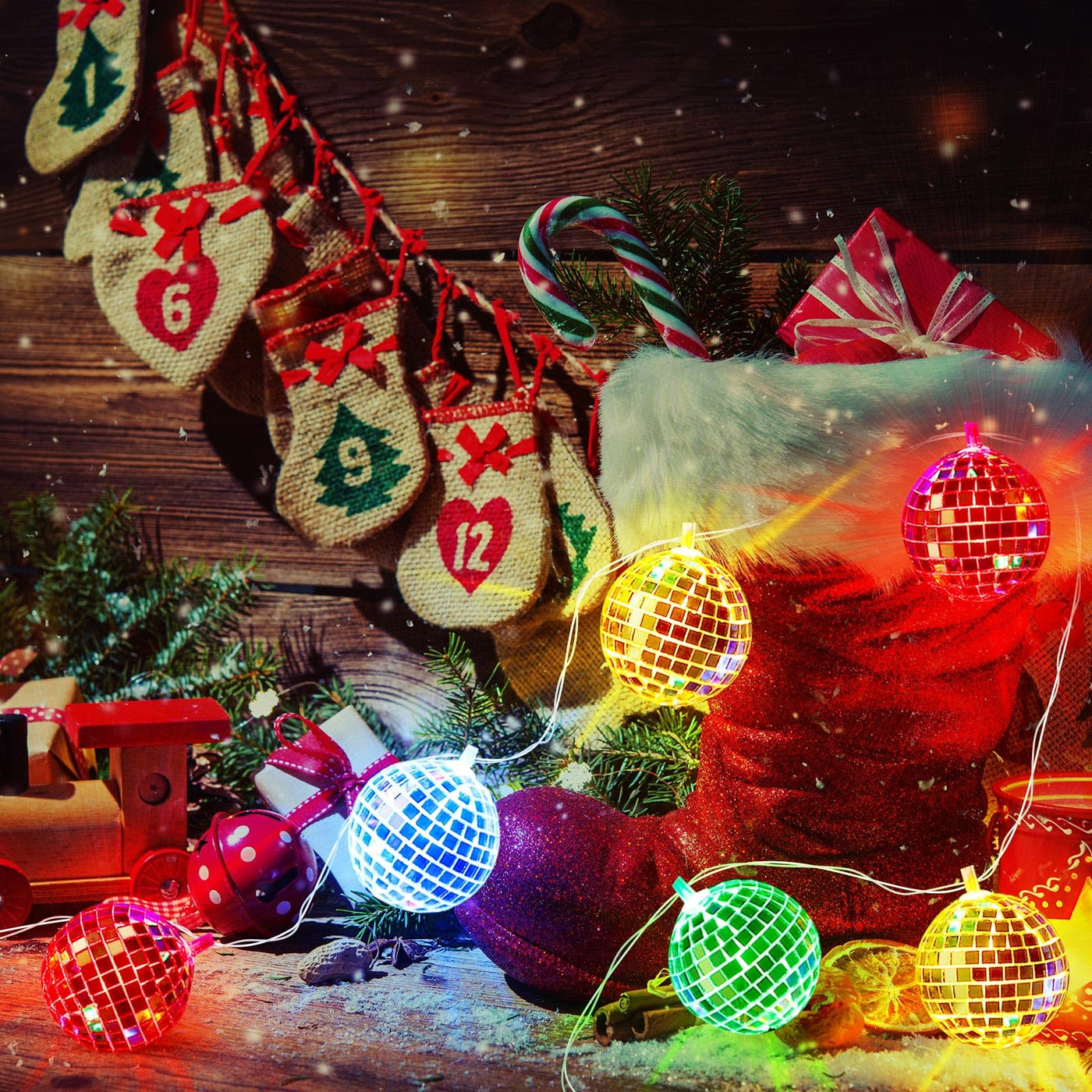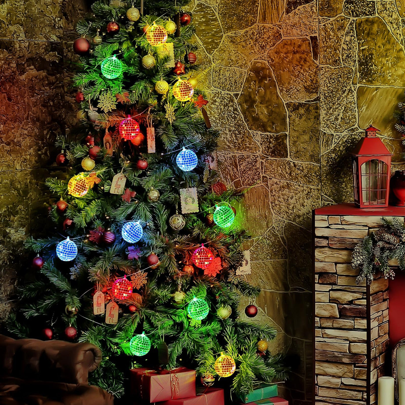 BBTO Disco Ball String Lights, 20 LED Mini Mirror Balls, 9.84 ft Long, Multicolor, Battery Powered, Perfect for 70s 80s Party Supplies