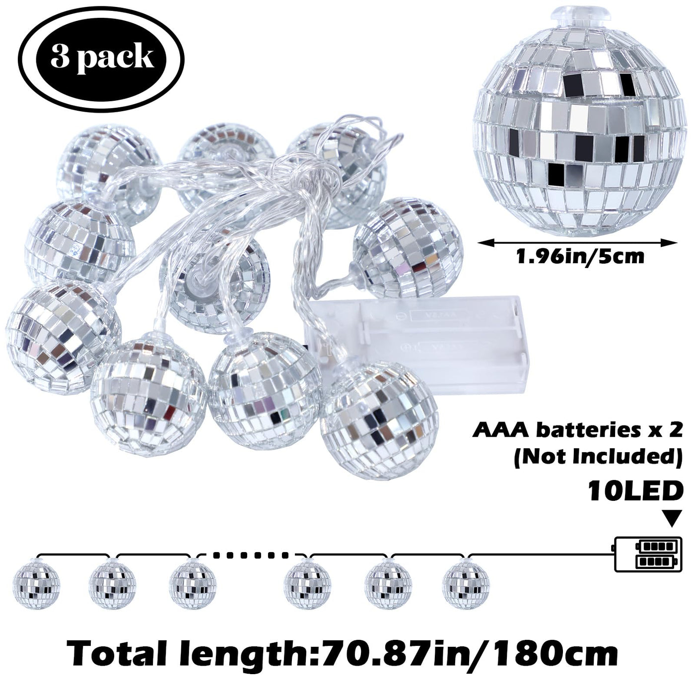 Package Content: Includes 1 long string of disco ball lights with a total of 10 colored LED lights.