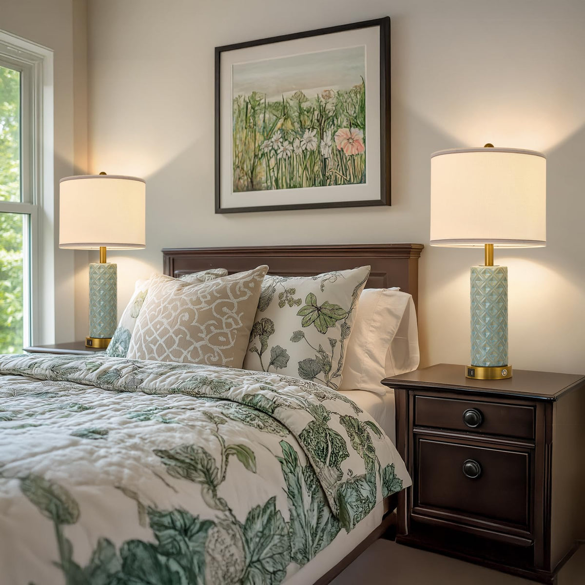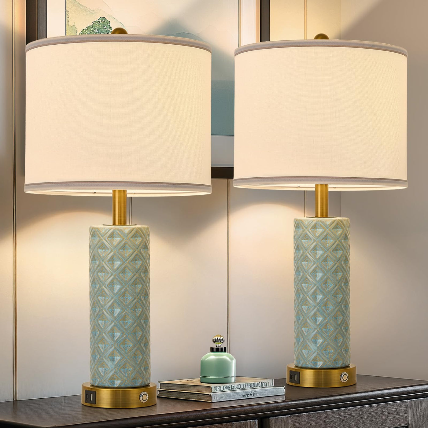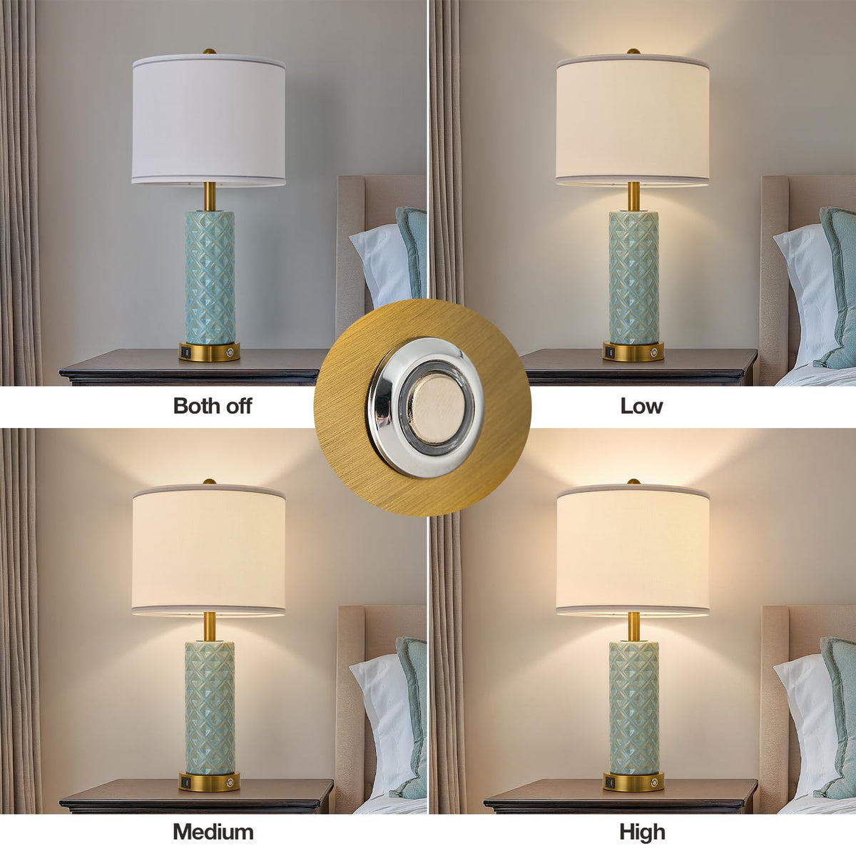 Bdayanx Set Of 2 Table Lamp For Living Room Bedroom Farmhouse,26'' Touch Control Bedroom Spa Blue Ceramic Lamps 3-Way Dimmable B