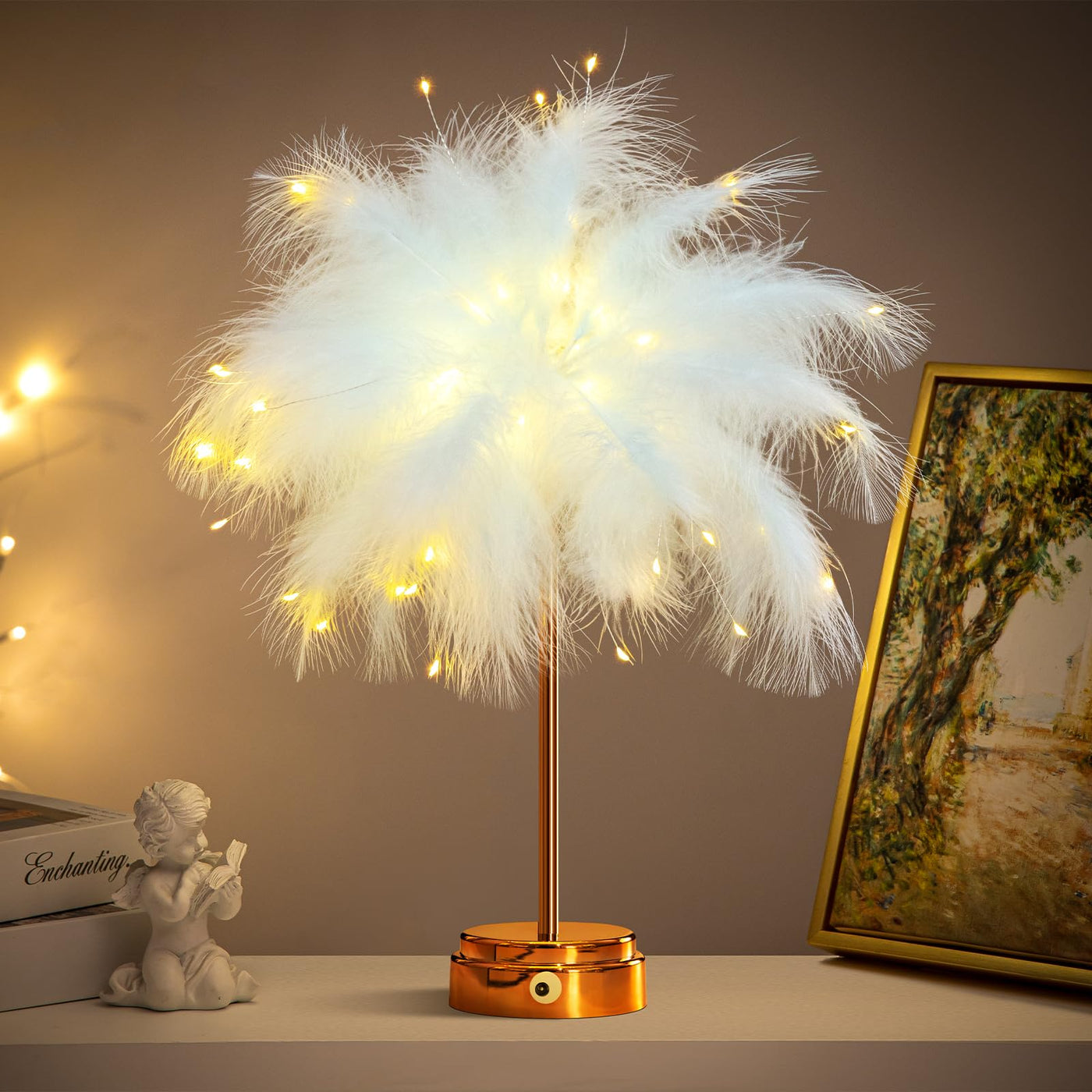 Q: Is the feather lamp suitable for all room styles?A: Yes, the feather lamp is designed to complement various decorative styles, making it perfect for use in bedrooms, cafes, restaurants, and store windows, adding a romantic touch to any space.