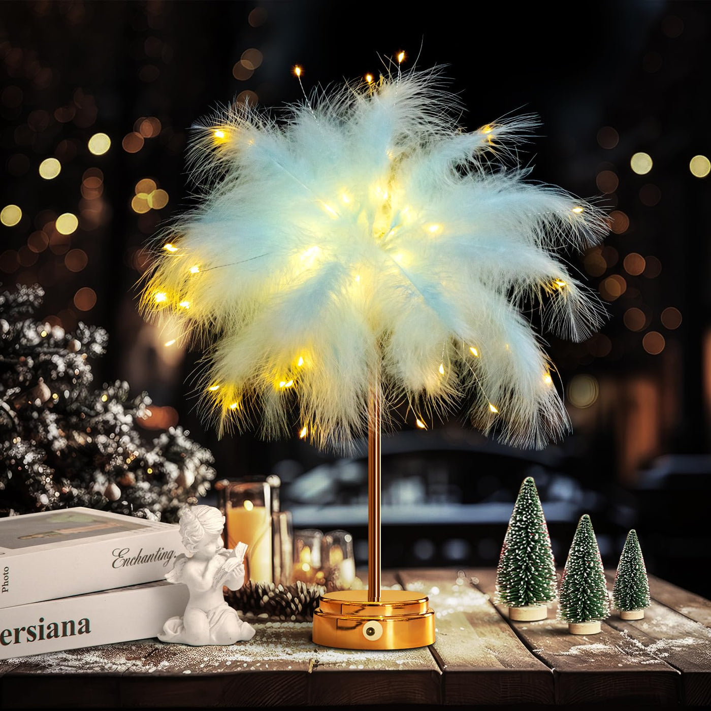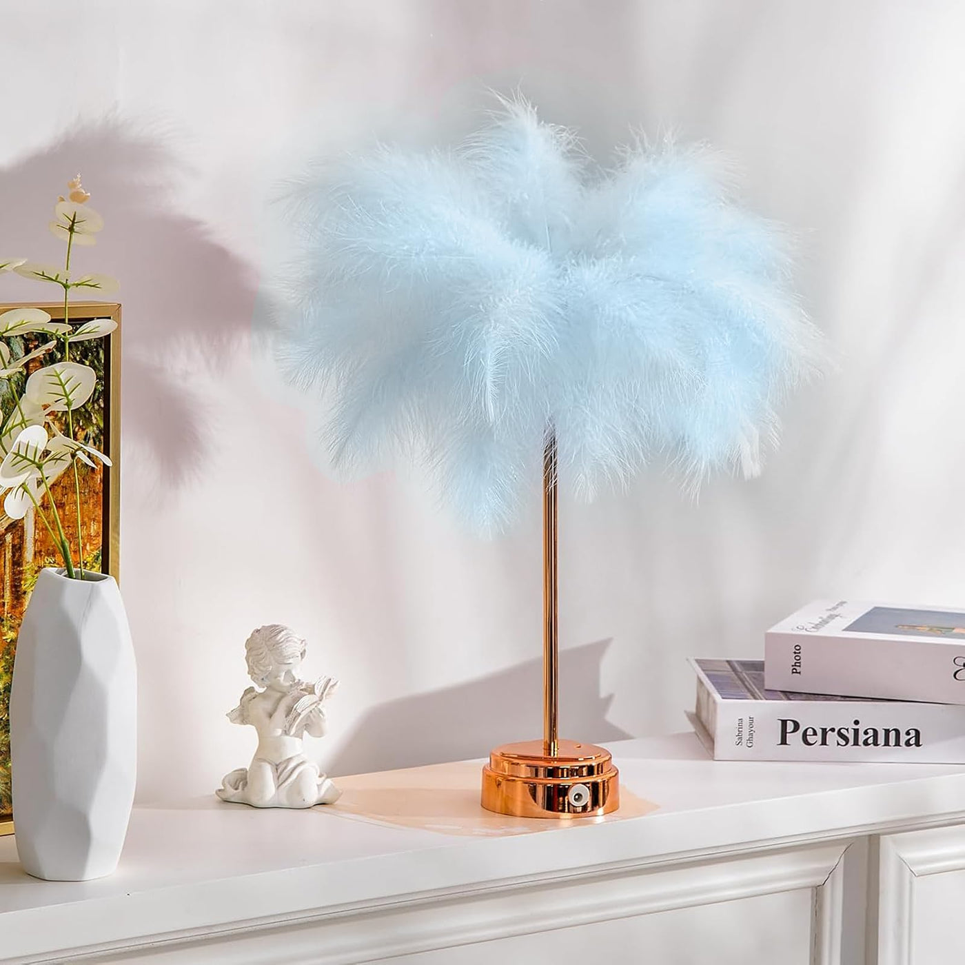 Bdusxyz Asterose Blue Feather Lamp - Led Atmosphere Feather Night Lights Bedside Lamps For Mother, Girlfriend Home Girl Room Wedding Decoration