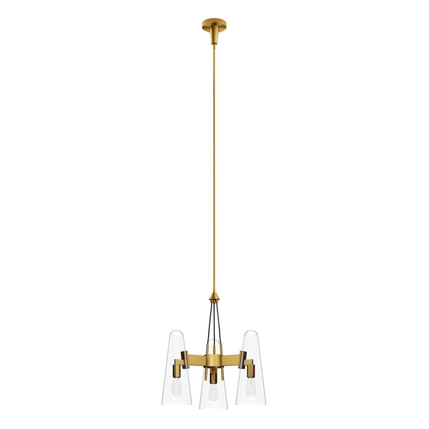 The Beacon 3-Light Pendant updates a living space, bedroom, kitchen, dining room, bathroom, or office with minimalist sleekness that makes a modern statement. Compatible with sloped ceilings, Beacon has a ceiling canopy with a swivel adaptor and features a five piece, height-adjustable hanging rod to suit a range of ceiling heights. Offering a warm glow through three slim glass cone shades, this hanging light requires three E26 bulbs 60W max or LED equivalent (not included). ETL Listed for Damp Locations. Luminaires that are “Suitable for Damp Locations” are approved for areas that are regularly exposed to moisture and condensation. Professional installation required. Set Includes: One - Beacon 3-Light Pendant Light Product Dimensions: Overall Product Dimensions: 20.5"L x 20.5"W x 73"H Shade Dimensions: 5"W x 11.5"H Base Dimensions: 5"L x 5"W