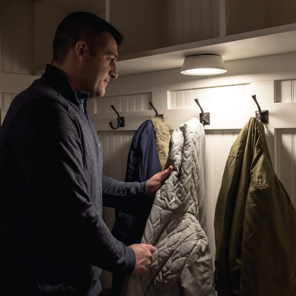 Mr. Beams LED ceiling light adds instant safety and convenience around the home. The automatic light activates with motion to provide hands-free lighting exactly when you need it. Its unique diffuser creates a pleasing, balanced light pattern. Easy, wireless installation allows for light anywhere without wires or an electrician, making the light perfect for closets, Showers, sheds, storage areas and pantries.
