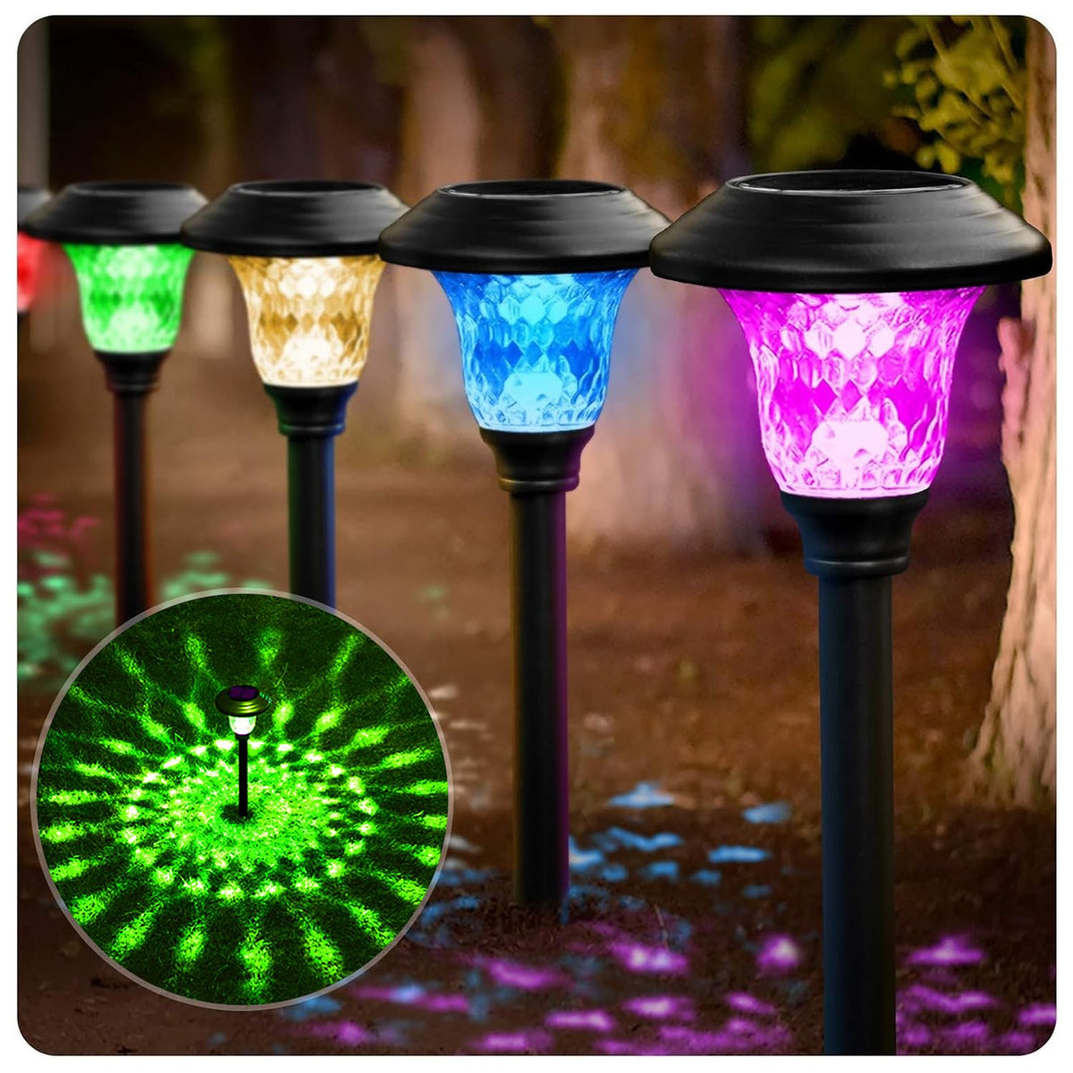 These solar pathway lights are not just functional but also add a decorative touch to your outdoor environment. The high transmittance glass lampshade creates captivating patterns that enhance your space, making them an ideal addition for festive occasions such as Christmas.