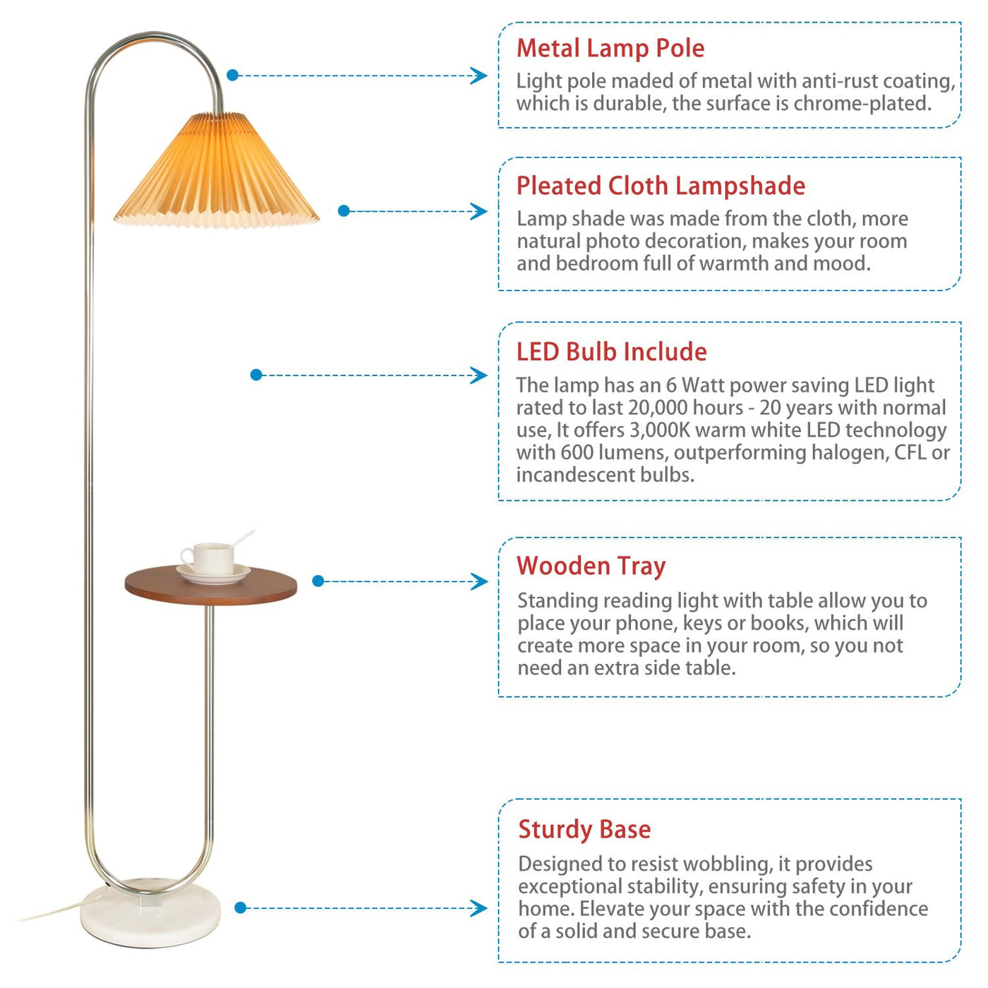 Q: Can I use this lamp in a small space?A: Yes, the beaysyty Modern Elegant Floor Lamp is designed with a functional tray table that adds convenience without taking up much space, making it perfect for small rooms like offices or cozy reading nooks.